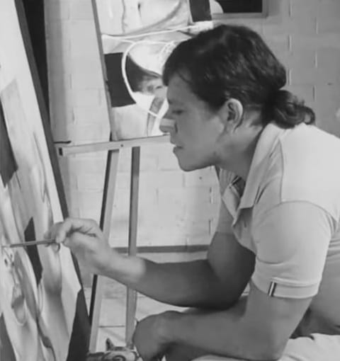 Desde pequeño me sentí atraído por las artes, en especial por la escultura y después descubrí que también me gustaba la pintura, pues tenía la habilidad de dibujar y pintar; tuve la motivación de mi madre para seguir por este camino, pues ella es pintora por gusto y cuando la veía pintar de niño, sentía una libertad y paz hacia mi persona y entonces empecé a crear esculturas; a los 14 años de edad comencé a utilizar el caballete y mis influencias fueron Manuel Felgueres, Rufino Tamayo, así como la música influye en mí cuando estoy pintando. Expresó una sociedad fragmentada así como su libertad; estoy totalmente seguro y convencido que el arte es una disciplina que tendría que estar sanando a la sociedad; mi labor como artista es sensibilizar al espectador a través del arte, además de que me siento libre con mis pinturas y esa libertad la quiero provocar en el espectador.