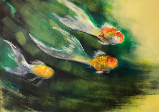Tres peces en el estanque verde