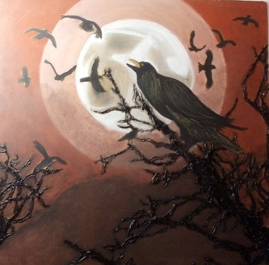 Arte Decorativo -El Sobrevolar Agónico De Un Cuervo De Su Hábitat En Llamas