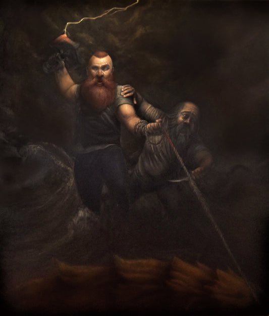Thor y Hymir pescando a la serpiente del mundo.