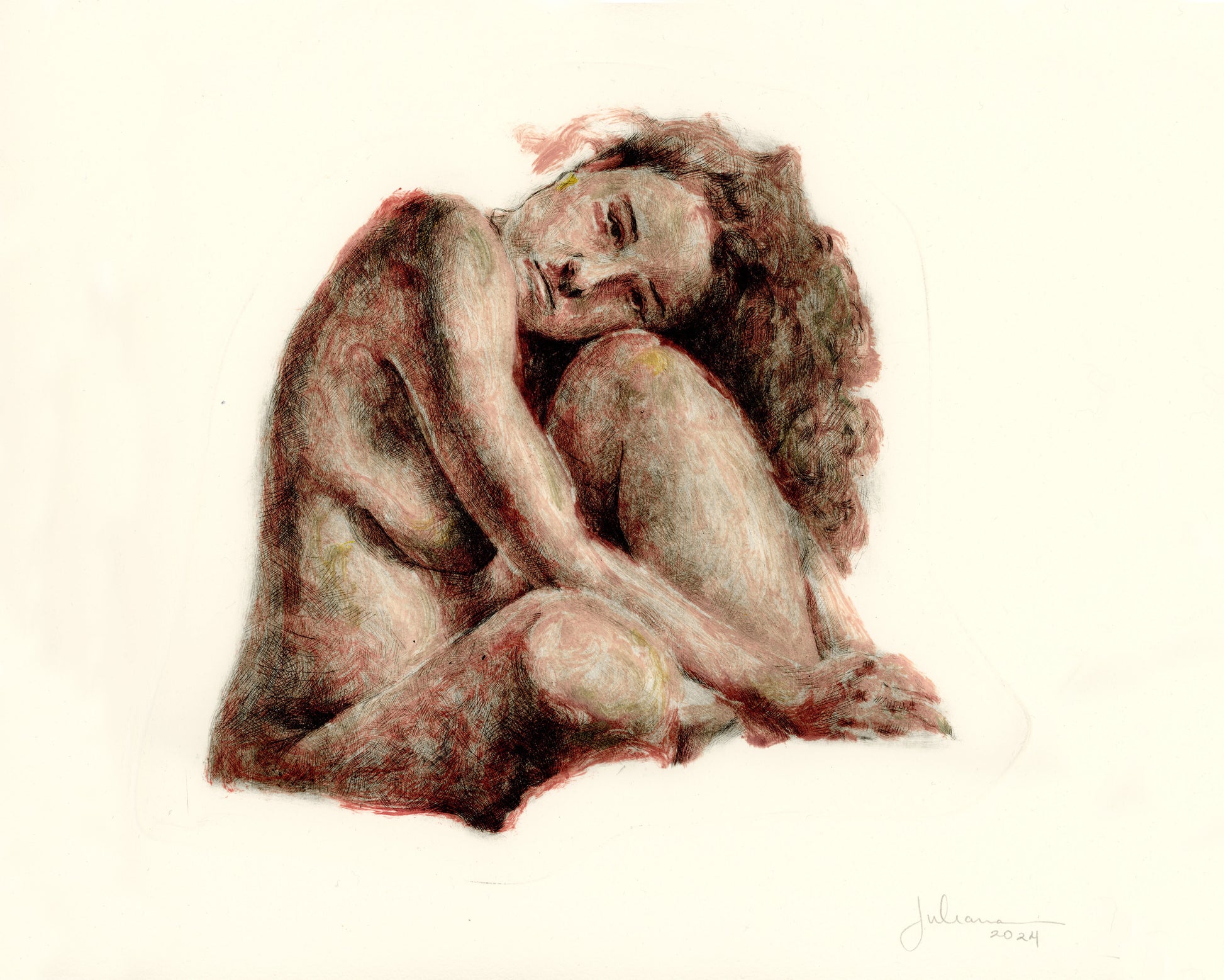 Esta obra es parte de la serie Hogar, en donde exploro una travesía personal hacia la aceptación de mi propio cuerpo. A lo largo del tiempo, he observado y admirado los cuerpos de otras mujeres en su autenticidad, sin embargo, he encontrado difícil trasladar esa misma apreciación a mi propia imagen. Este proyecto es una oda a mí misma, un acto de reconciliación con el cuerpo que me acompaña día a día, el cual me han enseñado a odiar y desear cambiar.