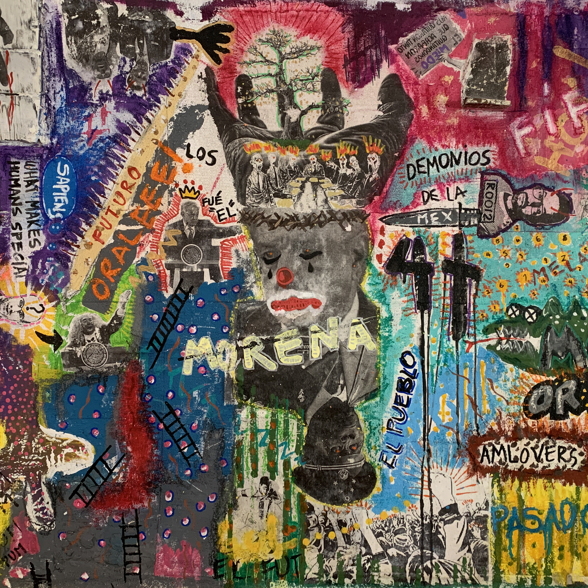 Técnica: bendas con yeso, medios mezclados, pintura acrílica, imágenes digitales
