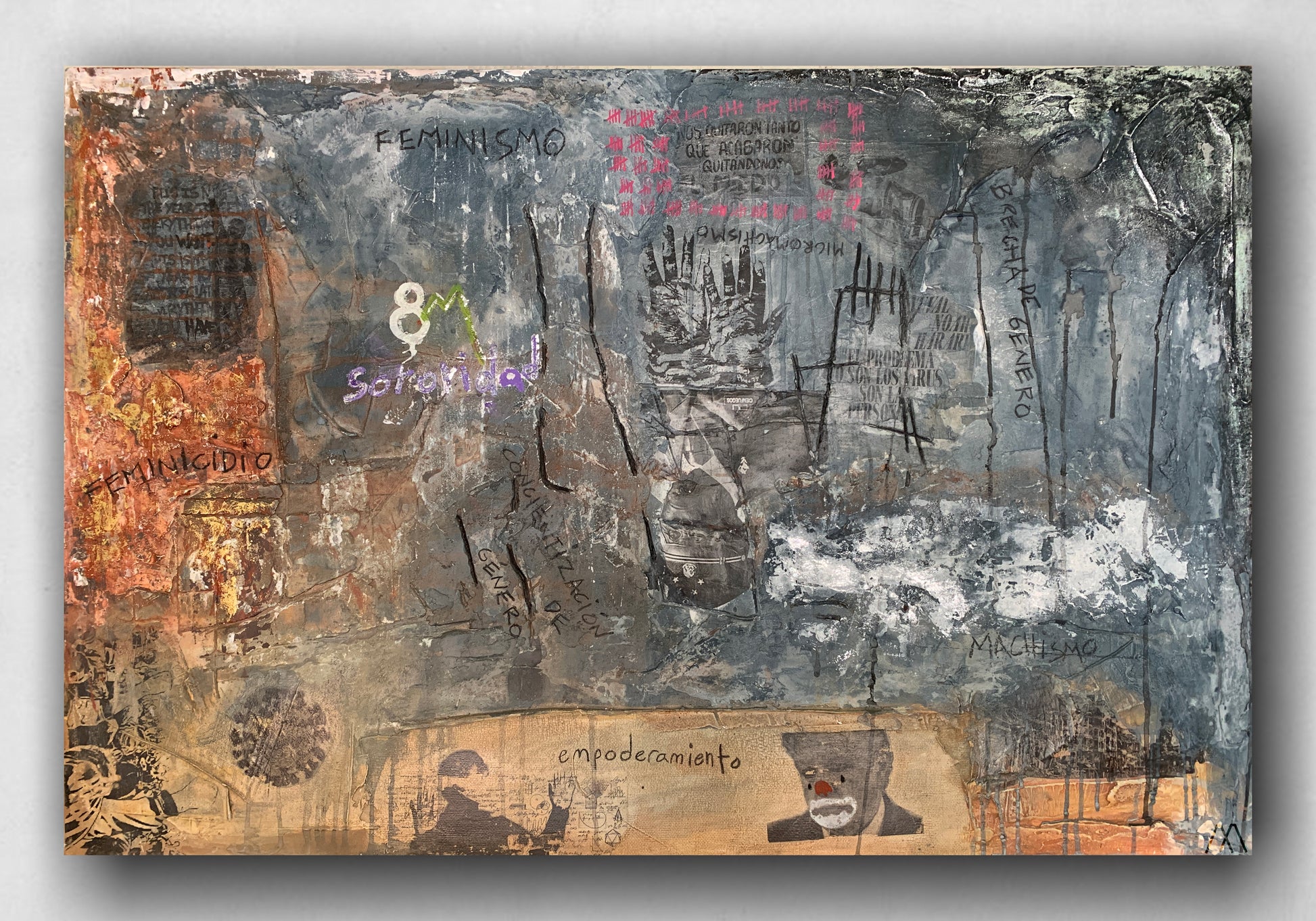 Técnica: Yeso y cemento, medios mezclados, pintura acrílica, sobre panel de madera.
