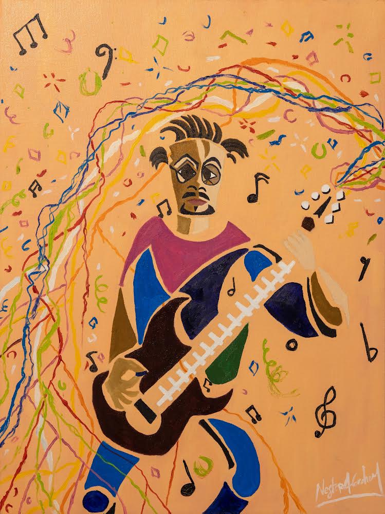 Autorretrato en el que me imagino tocando la guitarra mientras vivo un momento eufórico.