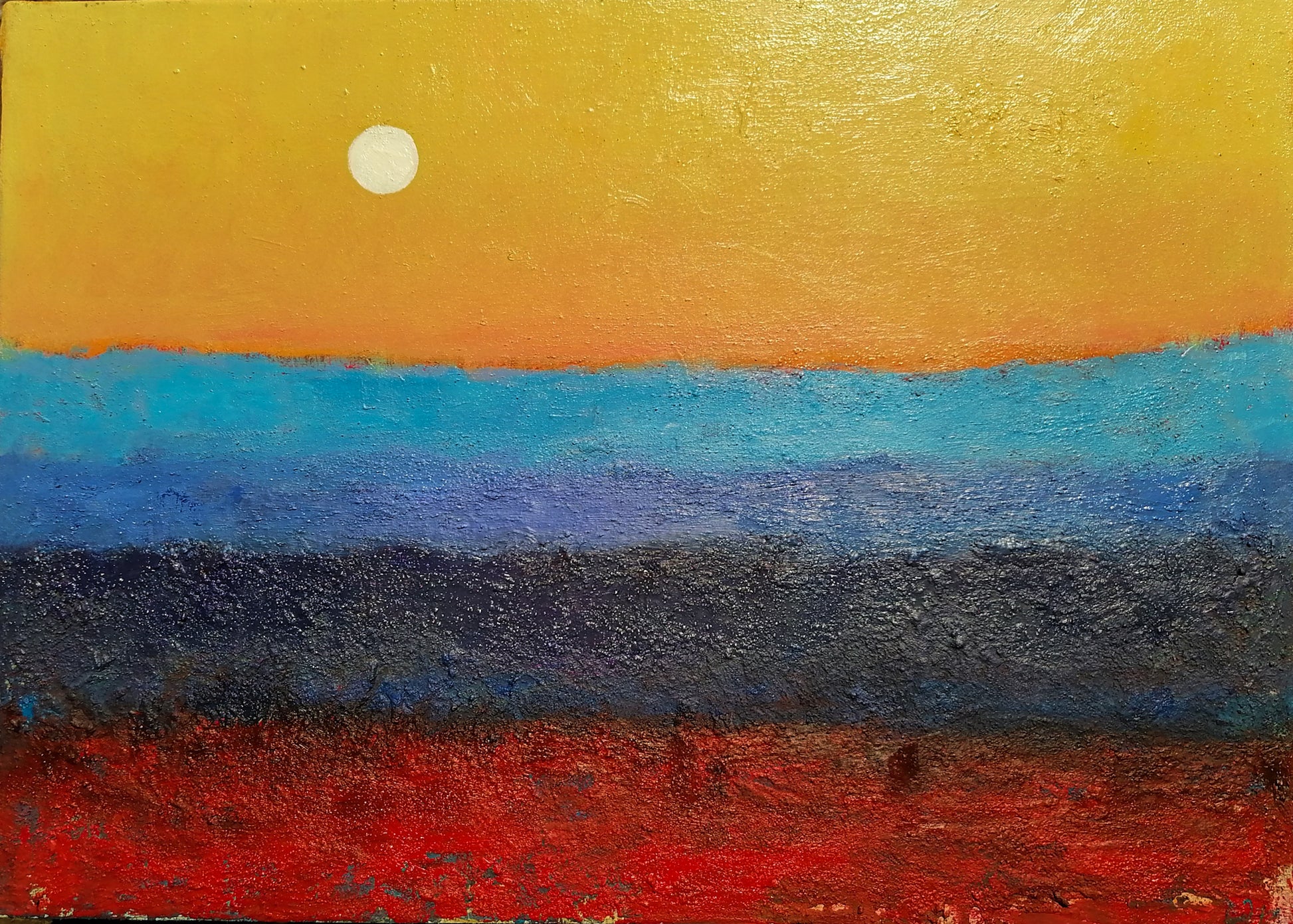 Esta obra está construida con referencias de distintas fotografías del mismo lugar. Acrílico y óleo con textura