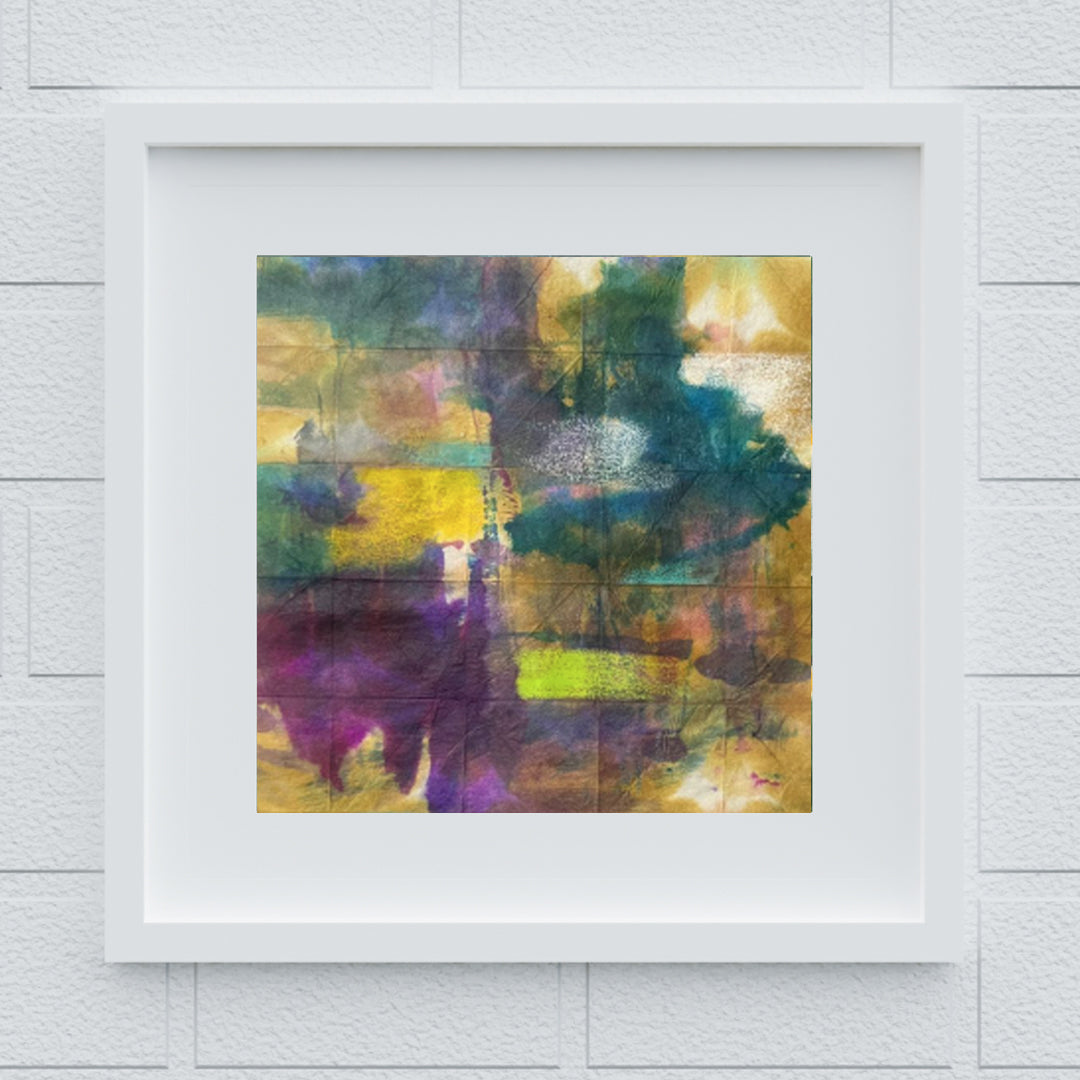 Obra abstracta multicolor. Ya tiene marco. Año 2025