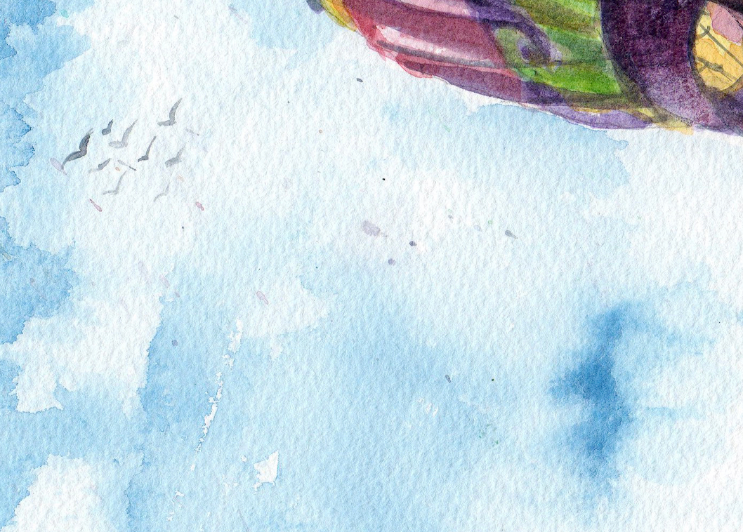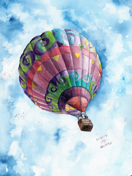 Esta pieza es una acuarela realista de un globo aerostático, en el que a través de lo figurativo y fiel del color se busca que deje ver en su máxima expresión la belleza de un viaje en globo.