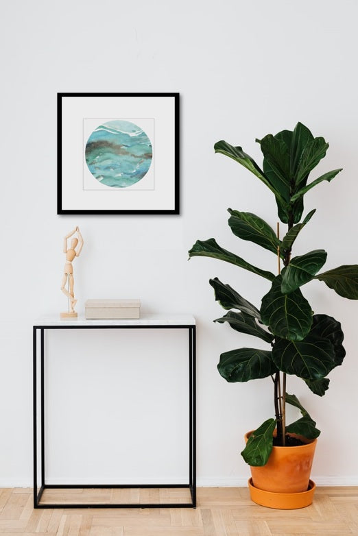 Impresión digital de acuarela con marco de madera