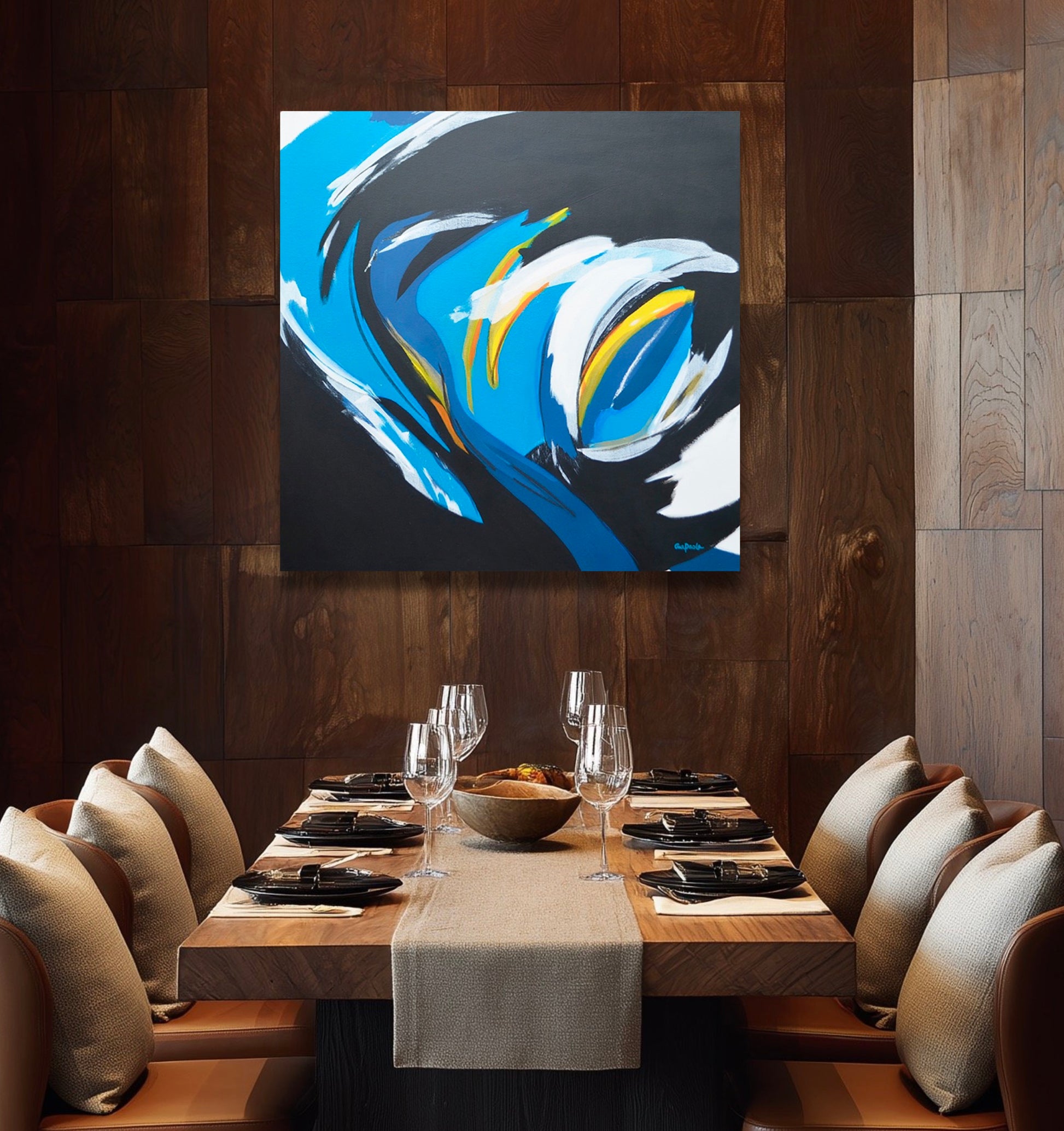 ¿Te encanta ver el mar? ¿El movimiento de las olas? ¿quisieras tener una ventana donde se vea esto? pues este es el cuadro para ti! Acá esta representada una ola que está rompiendo, ese movimiento que tanto nos gusta, si el mar es lo tuyo ya encontraste la obra ideal para ti.