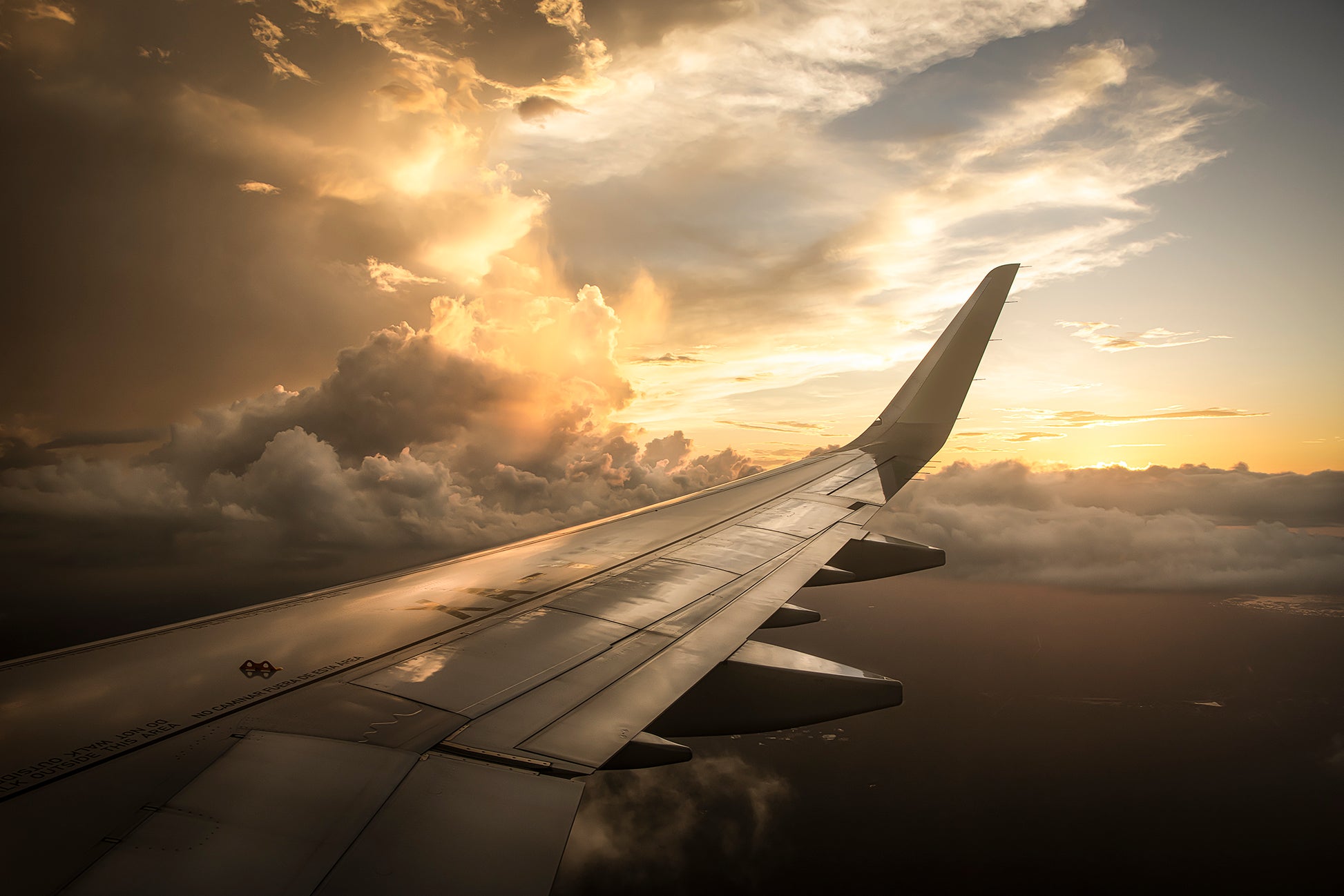 Ala derecha de avión comercial. Vista espectacular desde cielos mexicanos al estado de Yucatán.