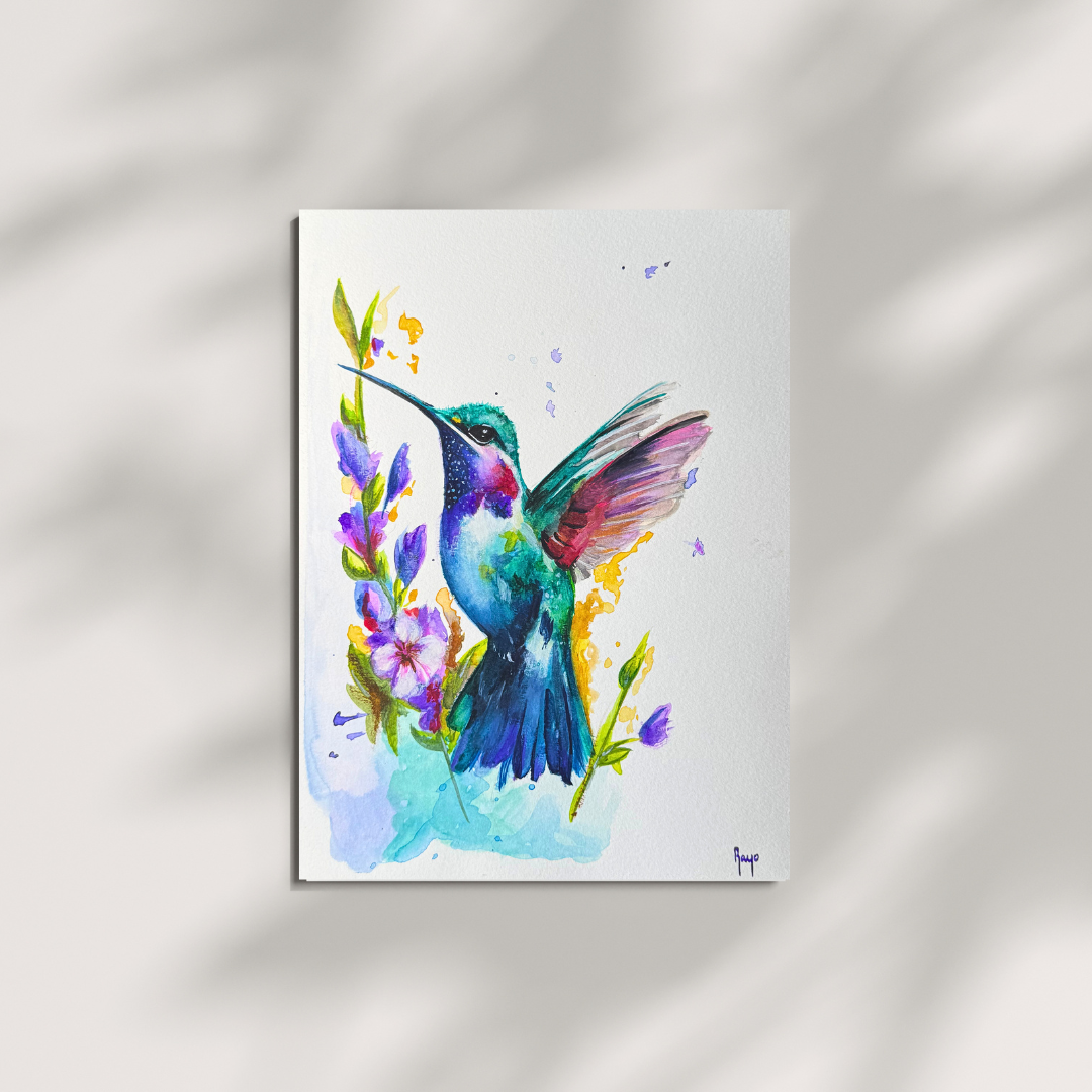 El colibrí suele asociarse con la capacidad de encontrar belleza en los pequeños momentos y de adaptarse a los cambios con gracia. Las flores que lo rodean refuerzan esta idea, evocando la conexión con la naturaleza y la búsqueda de dulzura en la vida.