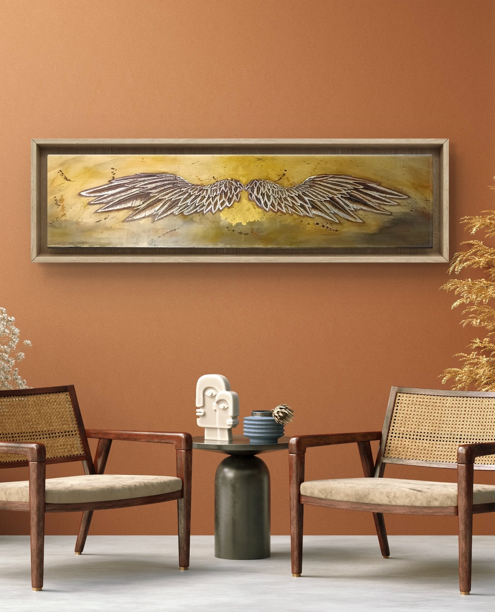 Una vez ubicada la obra en su lugar de exposición, te recomendamos evitar tocarla, no la expongas a cambios bruscos de temperatura y ten cuidado exponiéndola mucho a la luz. Procura mantenerla limpia, libre de polvo y comida y trata de no limpiarla con productos químicos que usarías normalmente en tu casa. Con esto lograrás tener una obra como nueva.