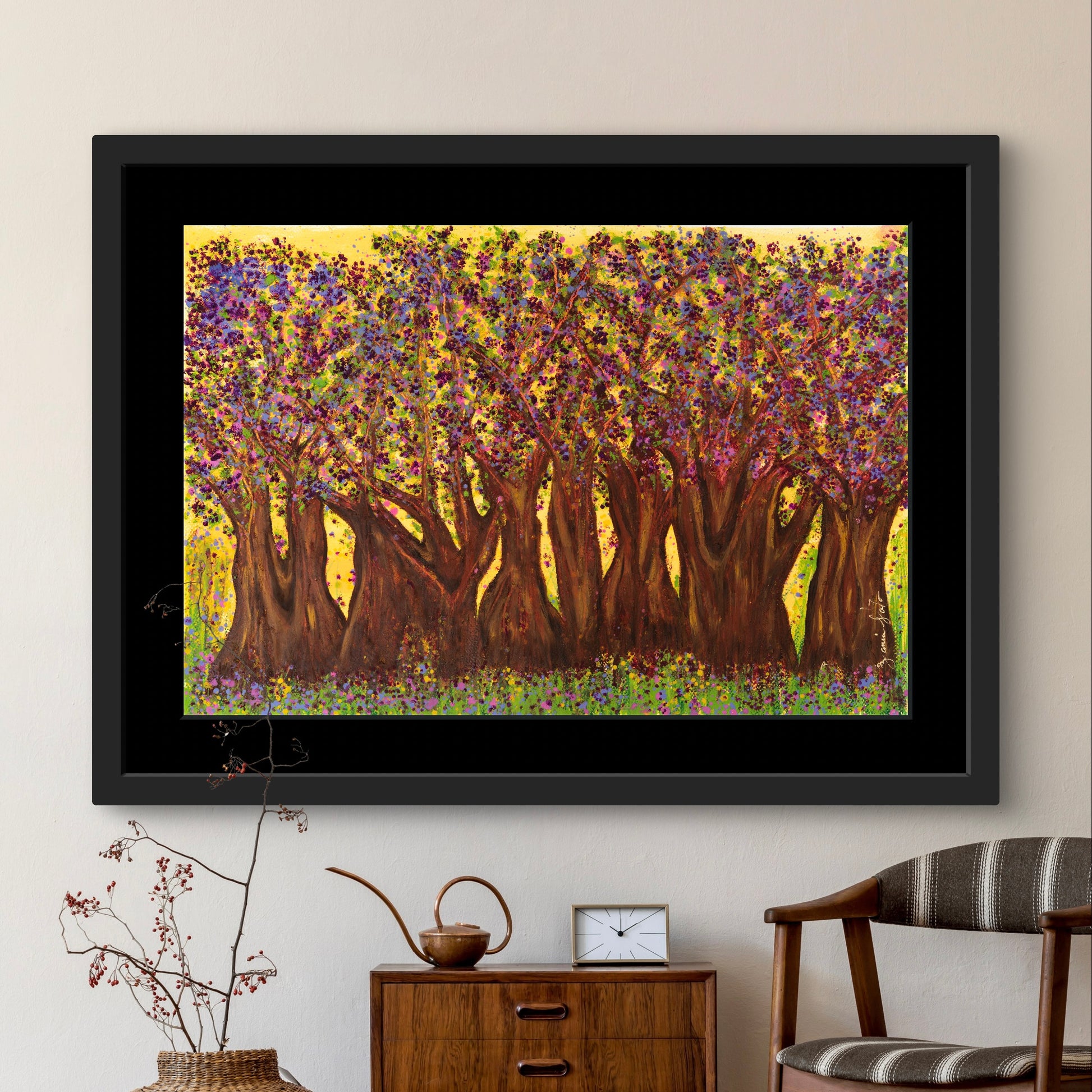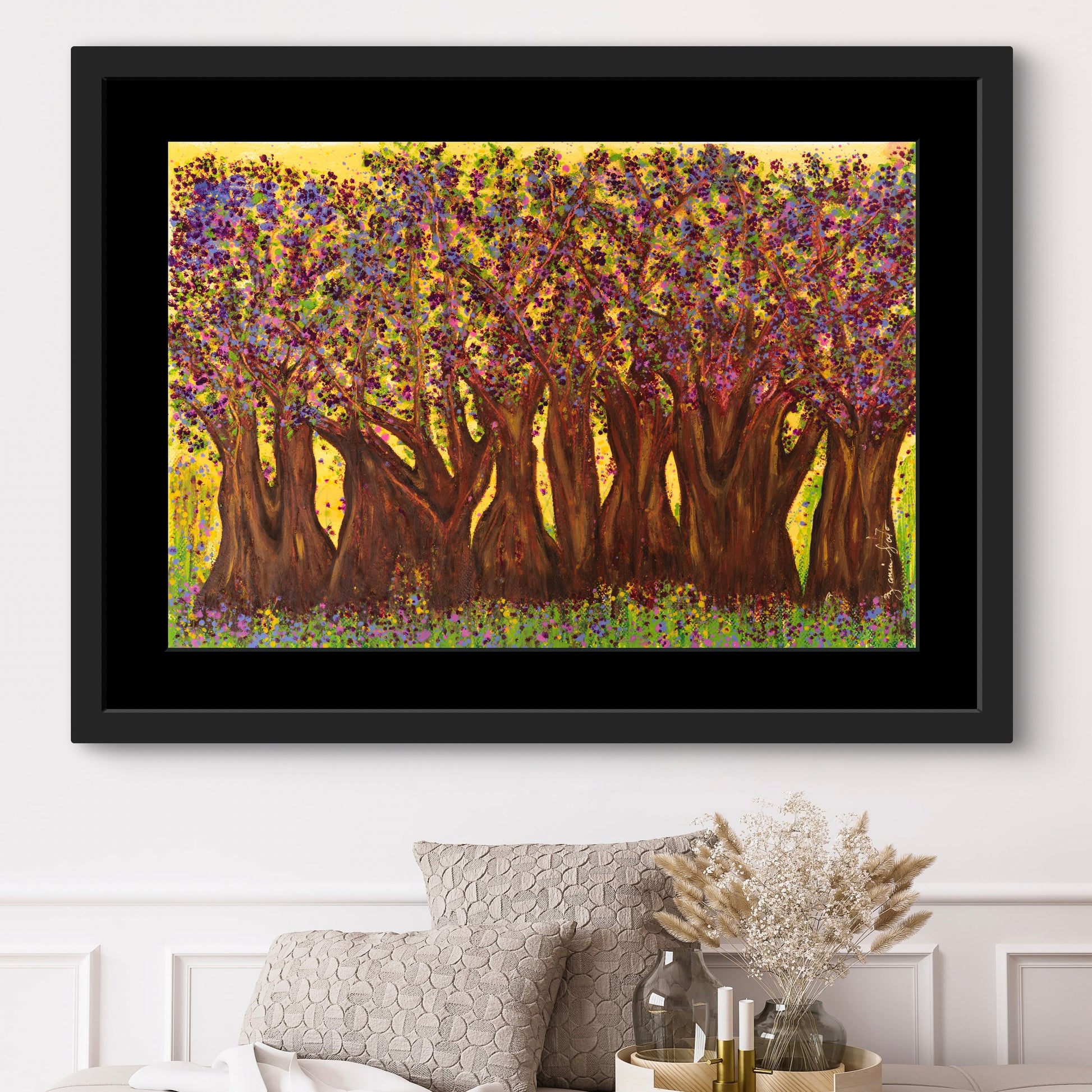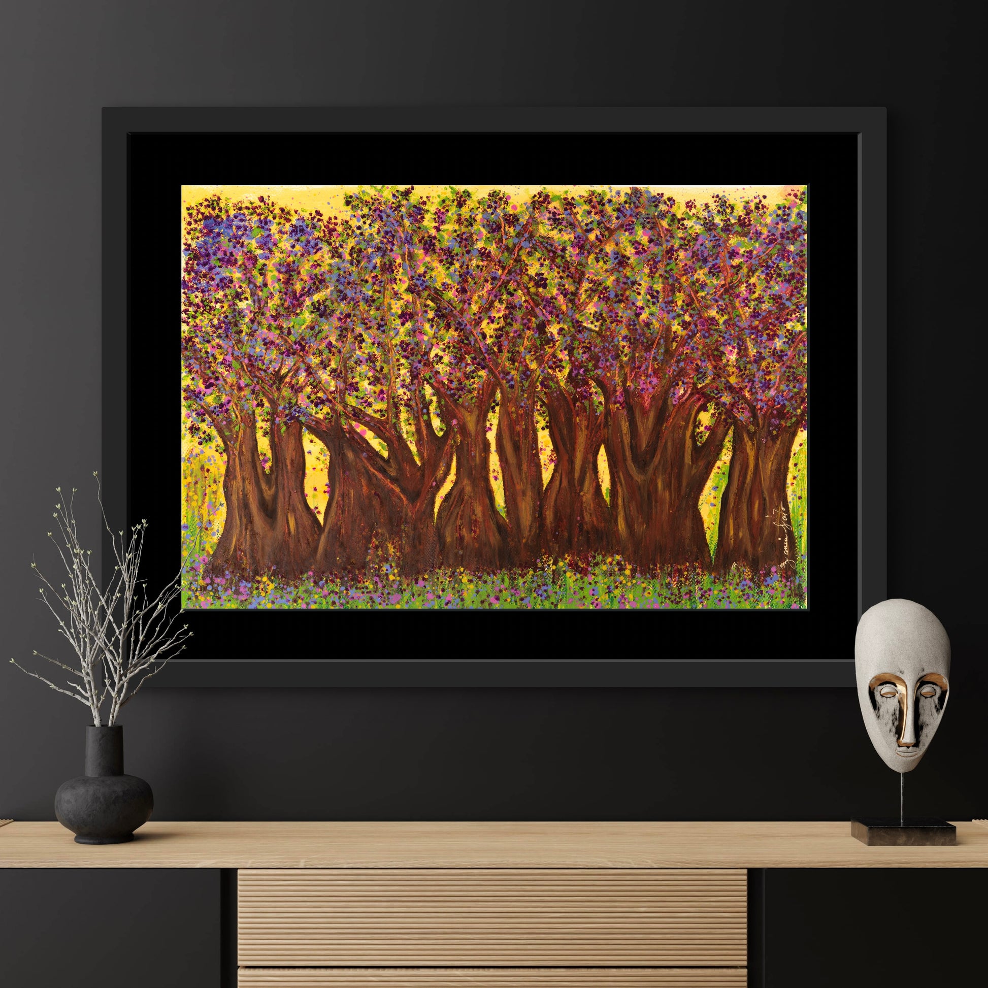 Una vez ubicada la obra en su lugar de exposición, te recomendamos evitar tocarla, no la expongas a cambios bruscos de temperatura y ten cuidado exponiéndola mucho a la luz. Procura mantenerla limpia, libre de polvo y comida y trata de no limpiarla con productos químicos que usarías normalmente en tu casa. Con esto lograrás tener una obra como nueva.