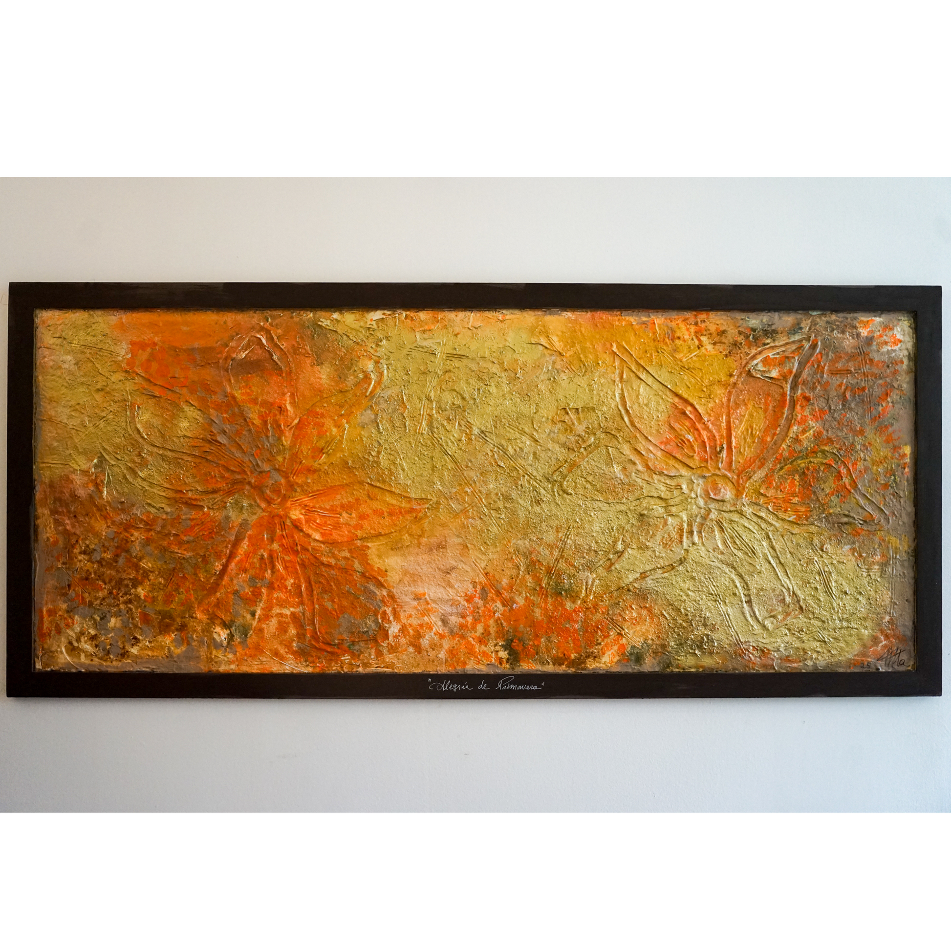 Mixta, moderna Decorativa; catalogada escultura en lienzo, fósiles de piedra en lienzo, o sobre madera, con una energía fuerte que se recibe, estilo particular de Mayita.