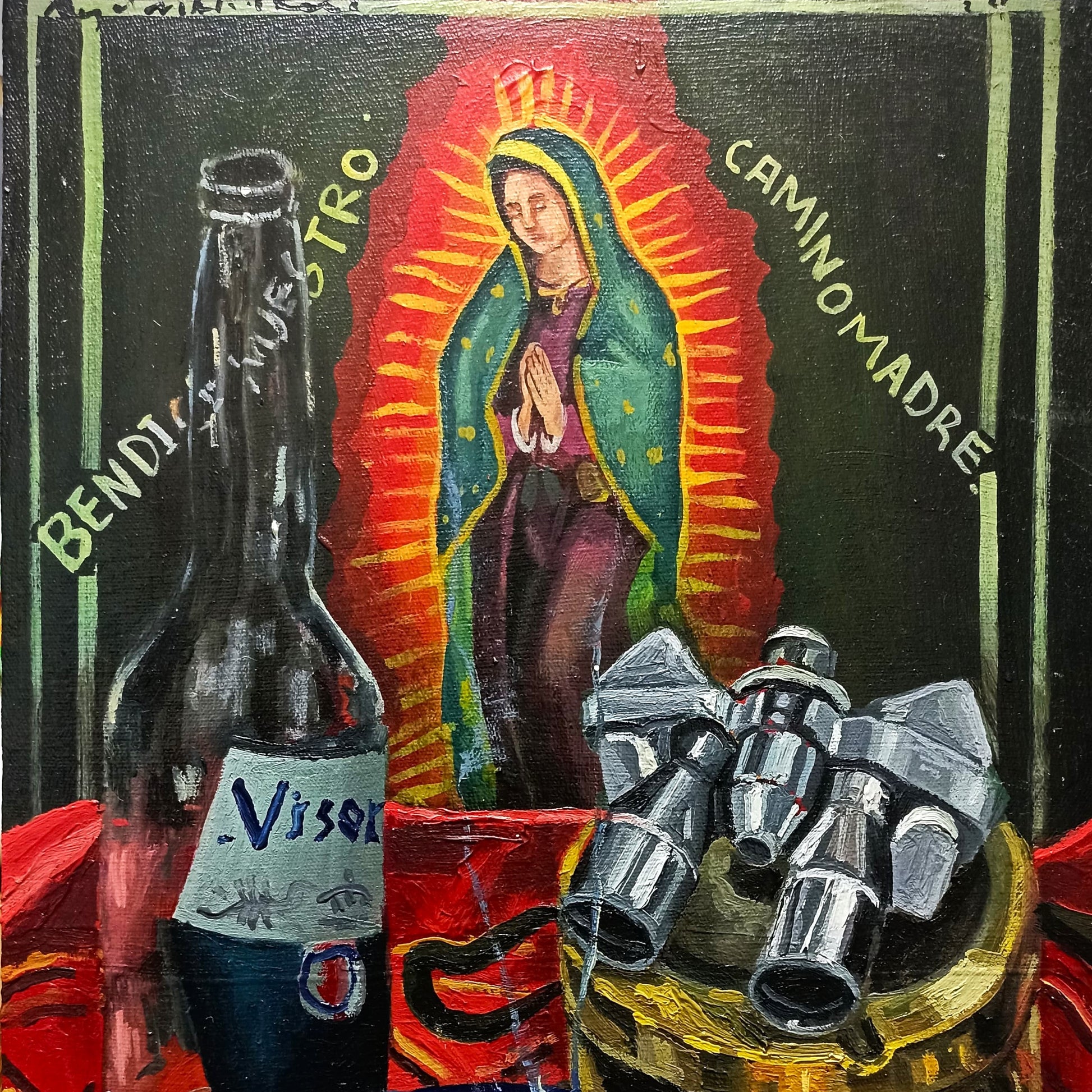 Esta pieza retoma objetos cotidianos e iconografías religiosas de identidad Mexicana para hablarnos sobre lo divino y lo terrenal, una dualidad muy presente en nuestras raíces.