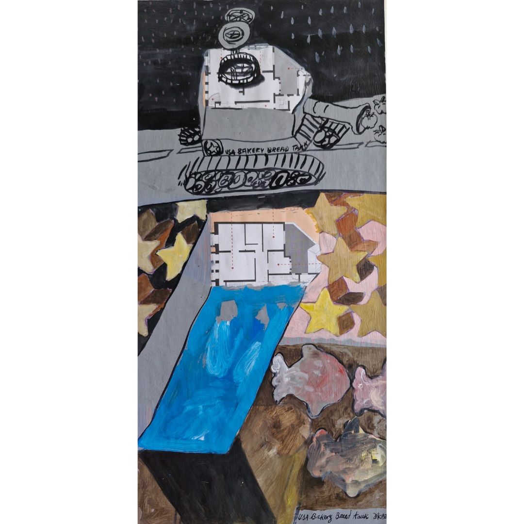 Esta serie de grabados y técnicas mixtas se centra en temas de conflicto y crisis, reflejando tanto las tensiones de guerra como las dificultades cotidianas como la escasez de alimentos, en el contexto de la inseguridad en las calles.