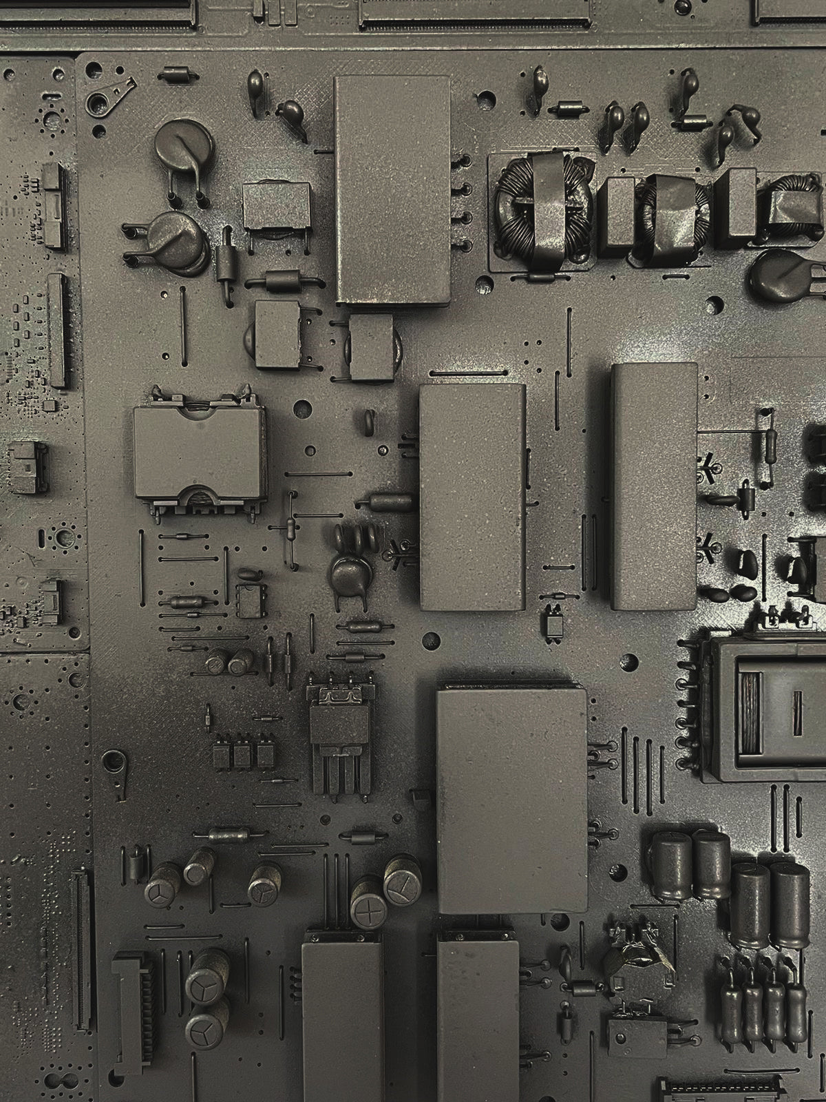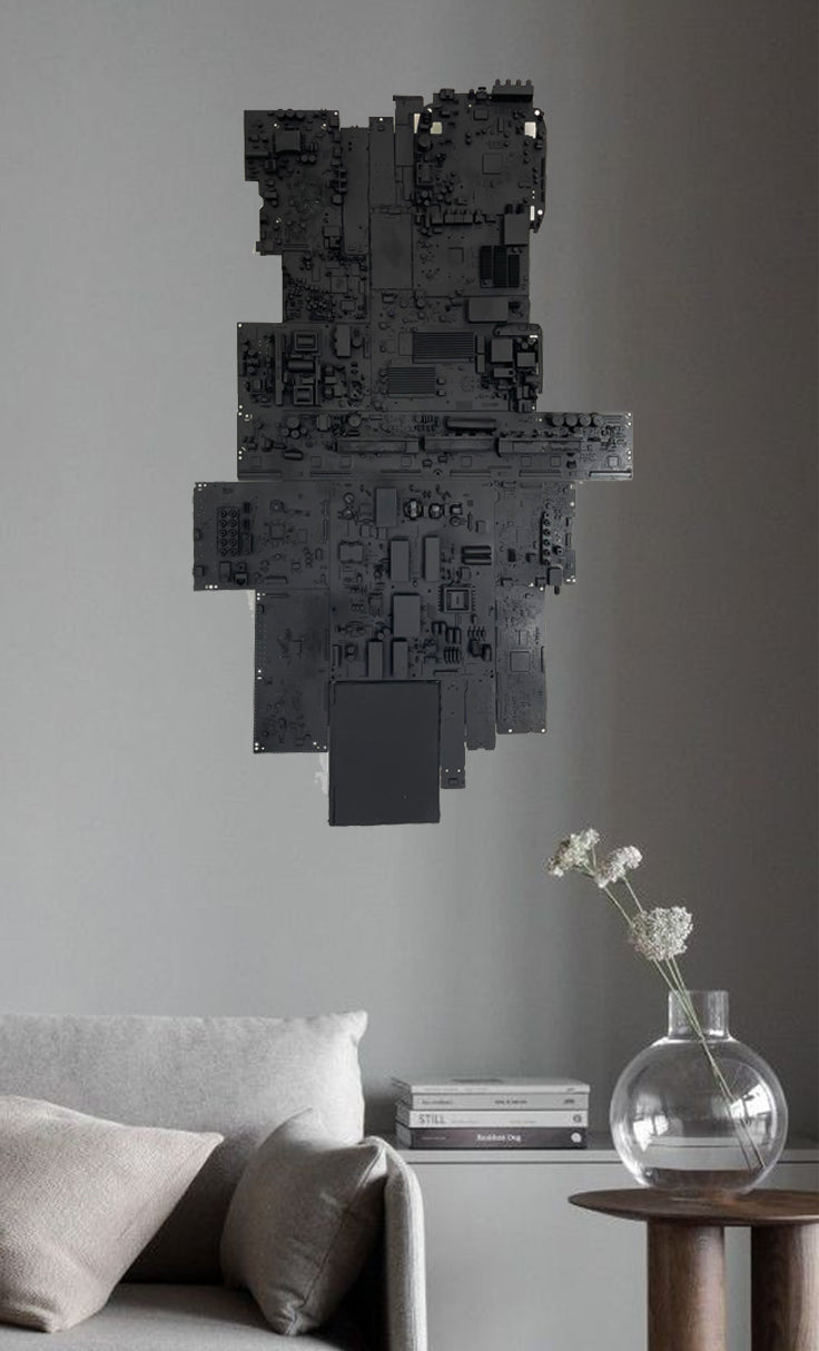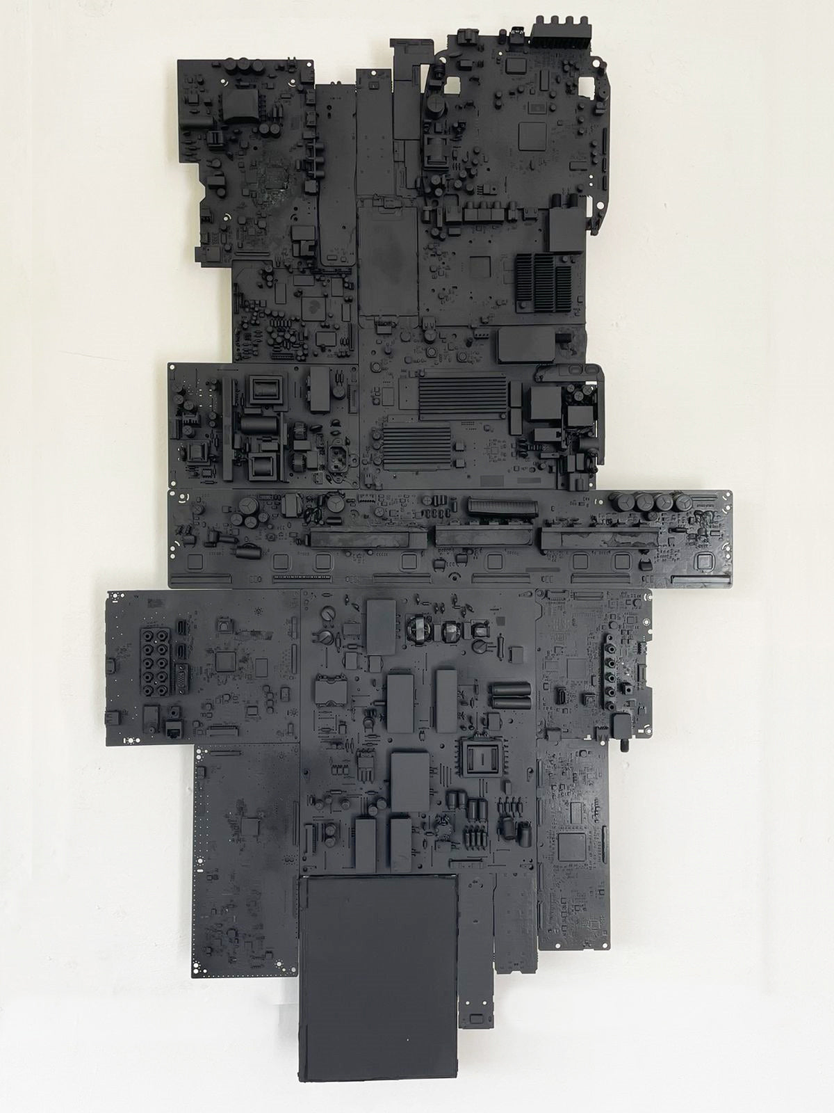 AMERICA pertenece a la serie taxidermia, que deriva del ensamble de tarjetas de memoria de los diferentes equipos electrodomésticos con los que trabaja el artista, como critica a la basura electrónica que genera la fabricación descomunal de productos eléctricos alrededor del mundo.