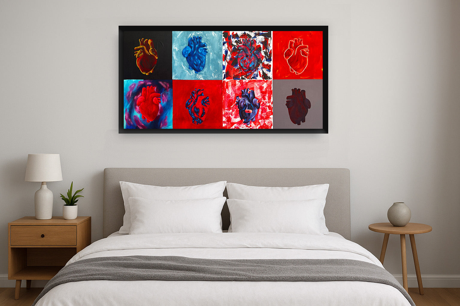 Cada corazón representa un estado distinto en el ciclo del amor. A través del color, la forma y la textura cada pieza muestracomo el amor muta, se fragmenta y vuelve a construirse. Anatomía del amor es una exploración visual de lo que nos mueve, nos quiebra y nos reconfigura cada vez que amamos.