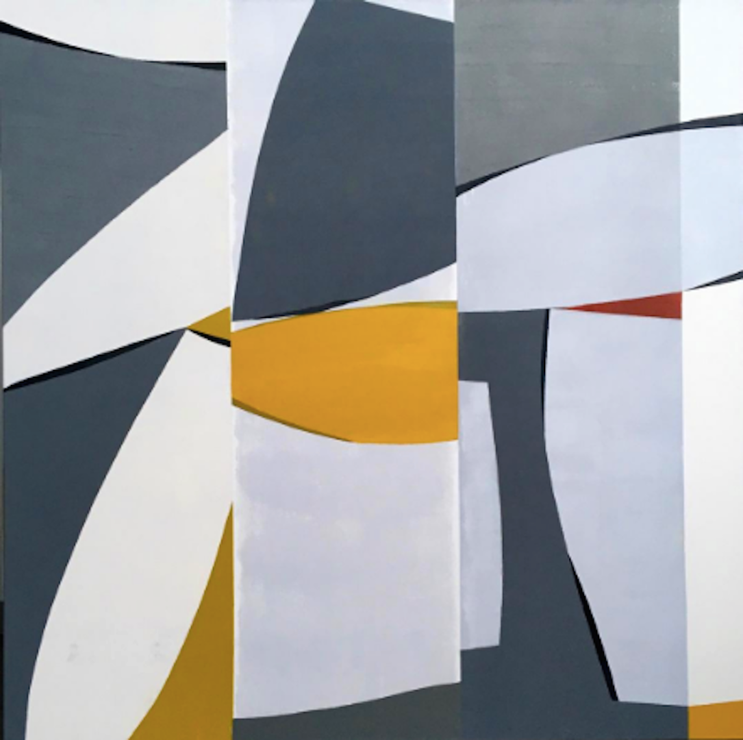 Mi trabajo explora el espacio del lienzo mediante trazos geométricos a partir de imágenes y referencias concretas y a partir de allí se inicia un proceso de descontextualización.