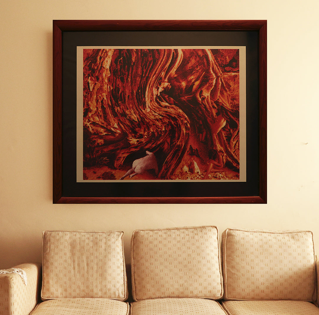 Una vez ubicada la obra en su lugar de exposición, te recomendamos evitar tocarla, no la expongas a cambios bruscos de temperatura y ten cuidado exponiéndola mucho a la luz. Procura mantenerla limpia, libre de polvo y comida y trata de no limpiarla con productos químicos que usarías normalmente en tu casa. Con esto lograrás tener una obra como nueva.