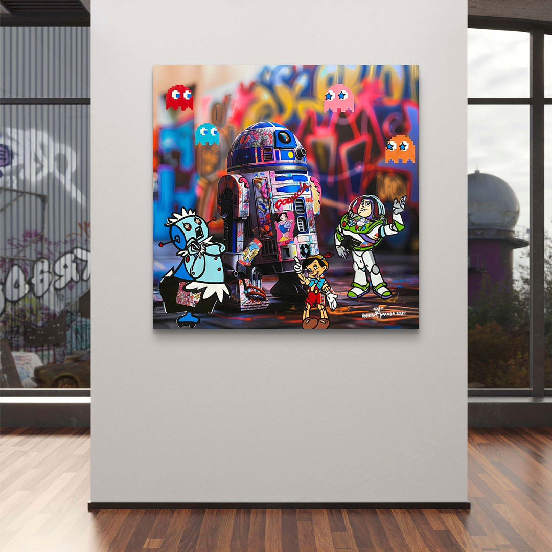 En esta pieza, Pinocho de madera observa con nostalgia cómo los juegos de antaño –quemados, resorte, avioncito– han sido reemplazados por brillantes y fríos dispositivos tecnológicos. Su cuerpo, cálido y orgánico, es el último vestigio de una época en que los juegos no solo entretenían, sino que conectaban a las personas. Ahora, rodeado de juguetes electrónicos, Pinocho simboliza la pérdida de esa esencia en un mundo cada vez más digital. Su mirada es un recordatorio de lo que sacrificamos en nuestra búsqueda de progreso, invitándonos a reflexionar sobre si, en nuestra obsesión por avanzar, hemos dejado atrás algo profundamente humano.