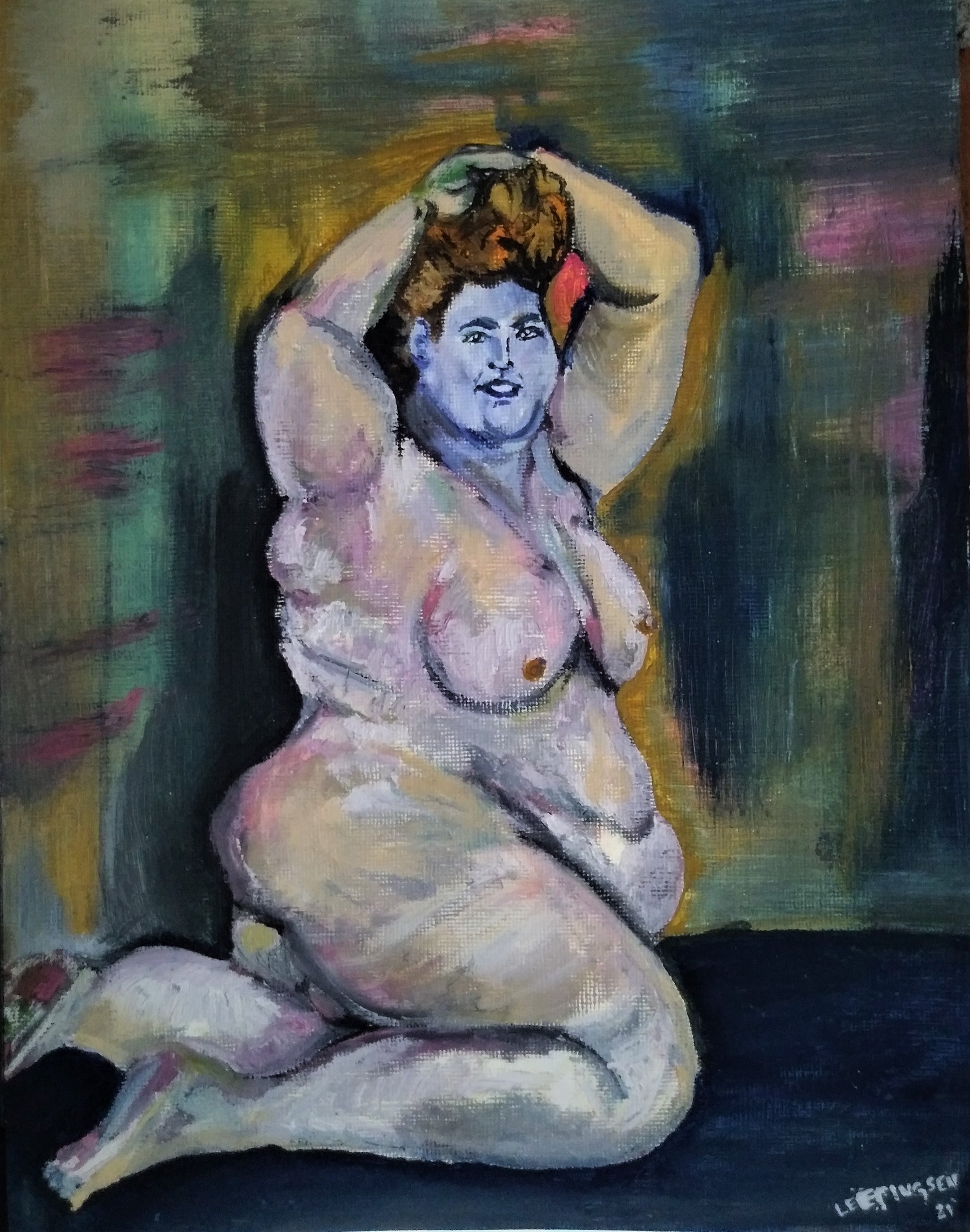 Es una mujer en la duda de cómo posar para su espectador, despreocupada por su peso, orgullosa de mostrarse.