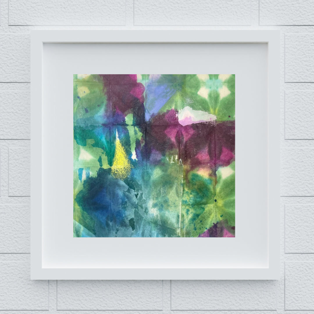 Obra abstracta multicolor. Ya tiene marco. Año 2025