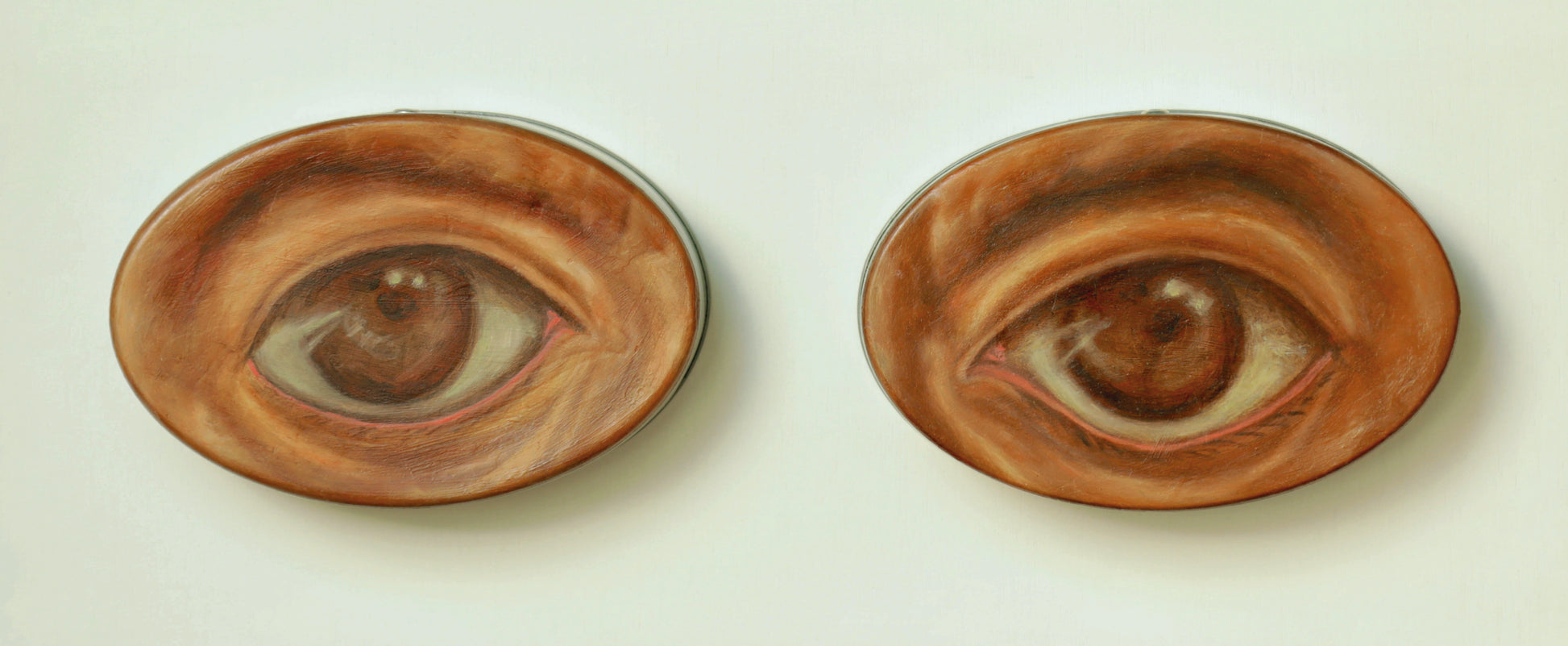 Esta obra pertenece a la serie de pinturas "La mirada enlatada" en donde las diferentes versiones de la forma ojo dialogan con la idea de que lo importante no es ver sino cómo vemos.