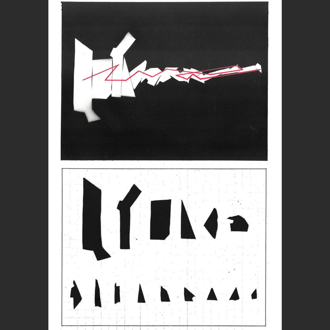 Después, partiendo de este orden, los fragmentos fueron unidos en las composiciones mediante una línea roja que seguía el criterio de clasificación previa. Esto dio como resultado un tipo imprevisto de visualidad en las composiciones iniciales.
