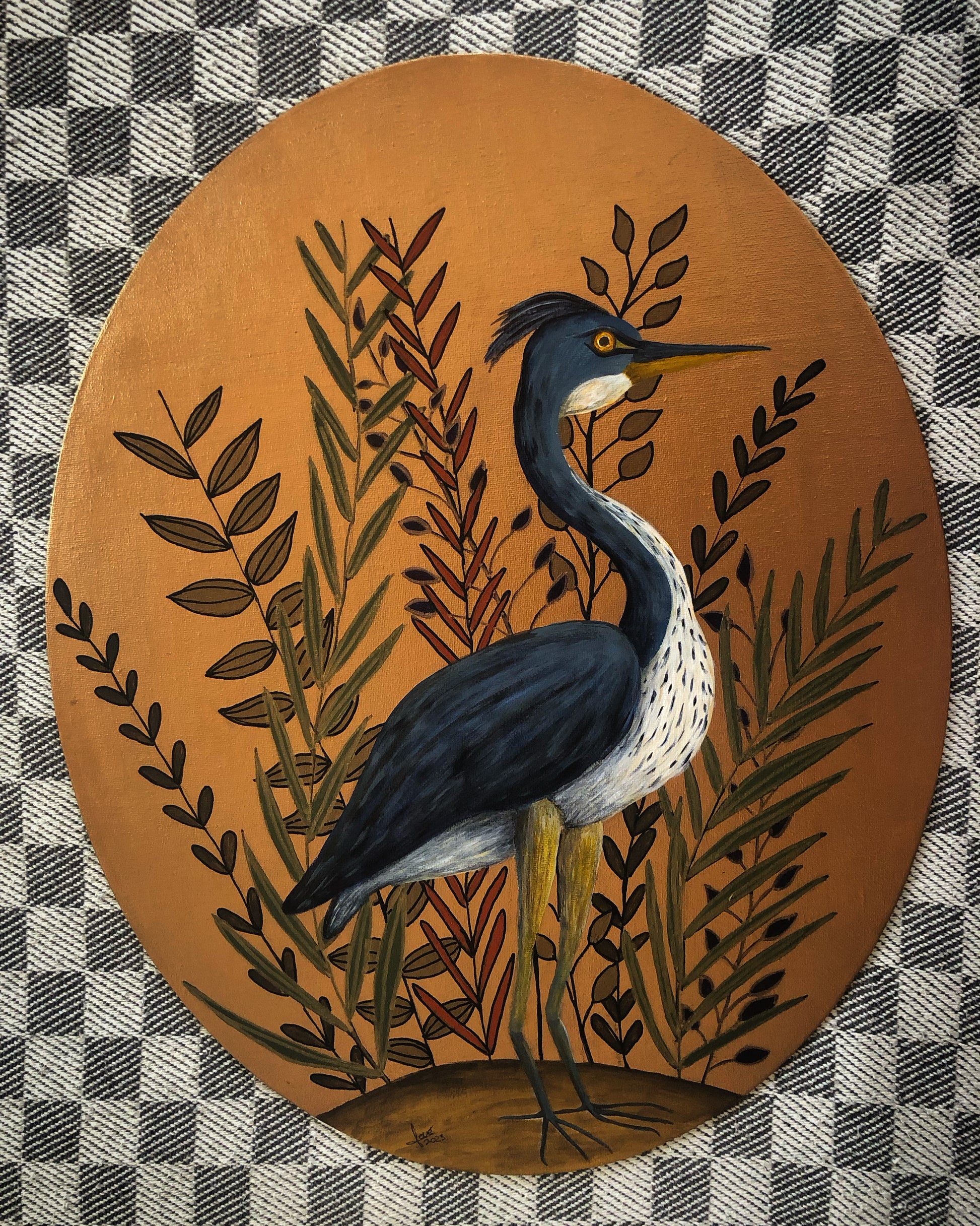 La flora y fauna son las protagonistas de esta obra en técnica mixta sobre tabla.