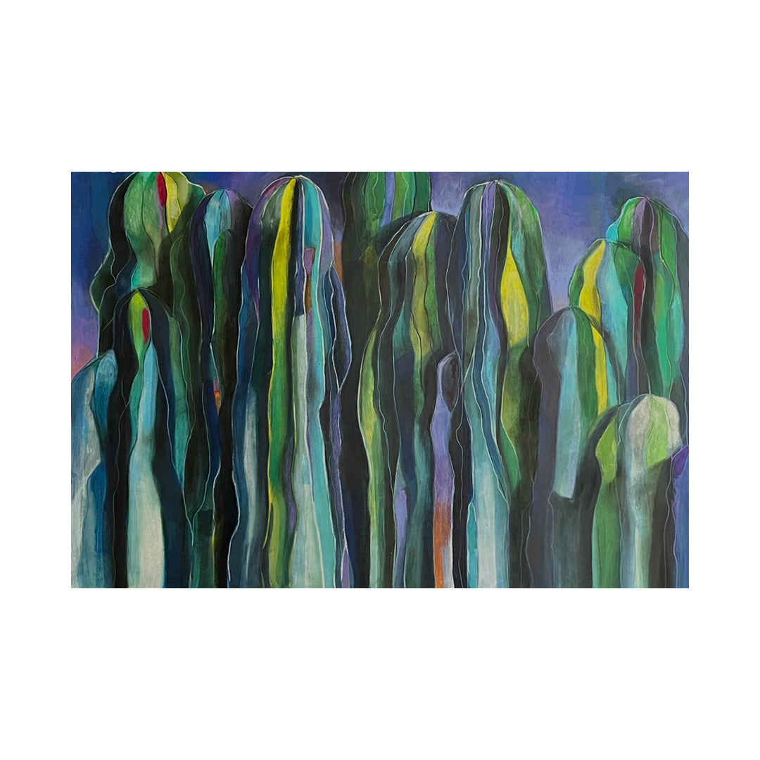 Técnica mixta, tintas acrílicos, acuarela y lápices de colores, sobre artboard
