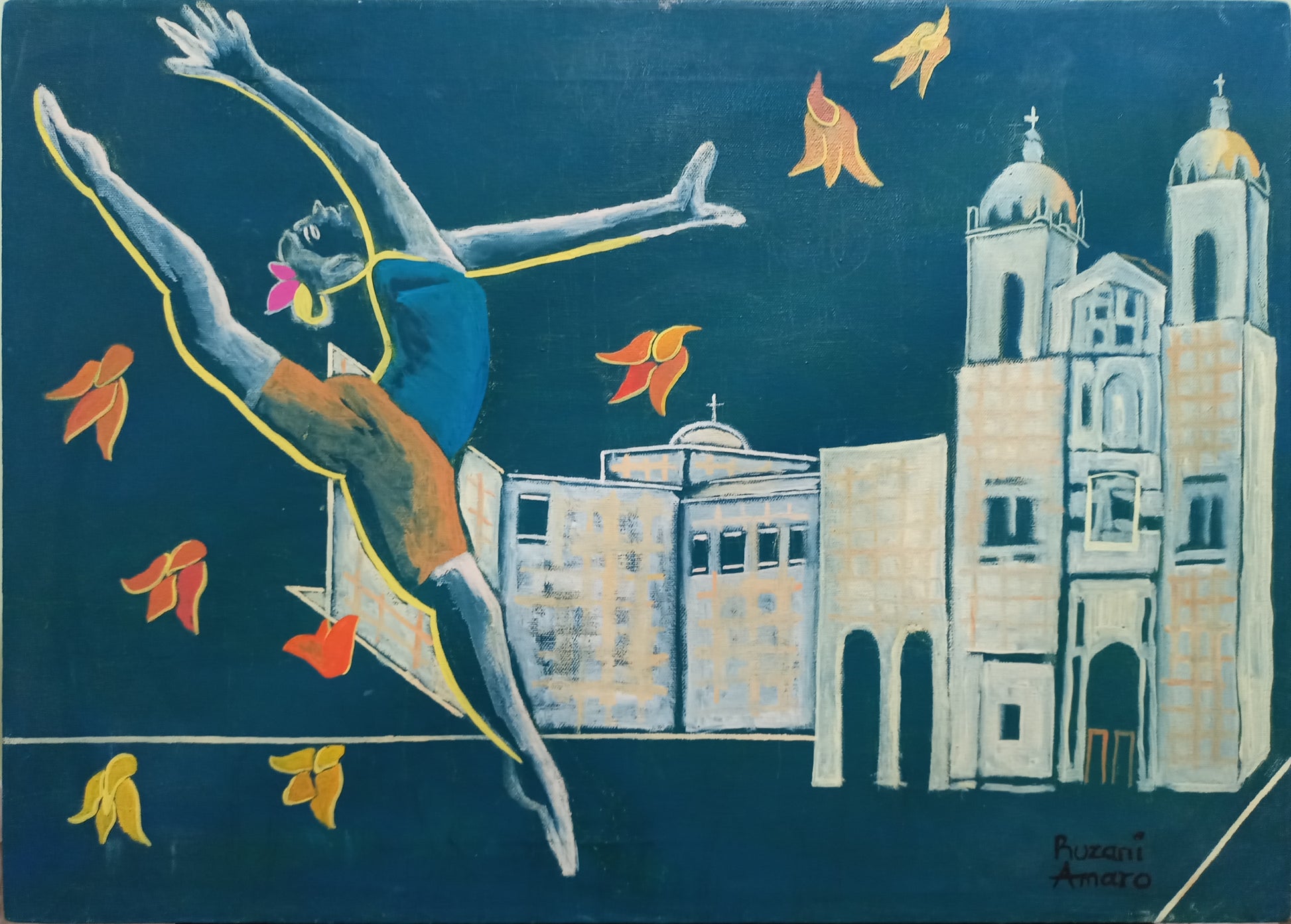 Negativo en acrílico de bailarina urbana frente a Iglesia de Santo Domingo Guzmán Oaxaca