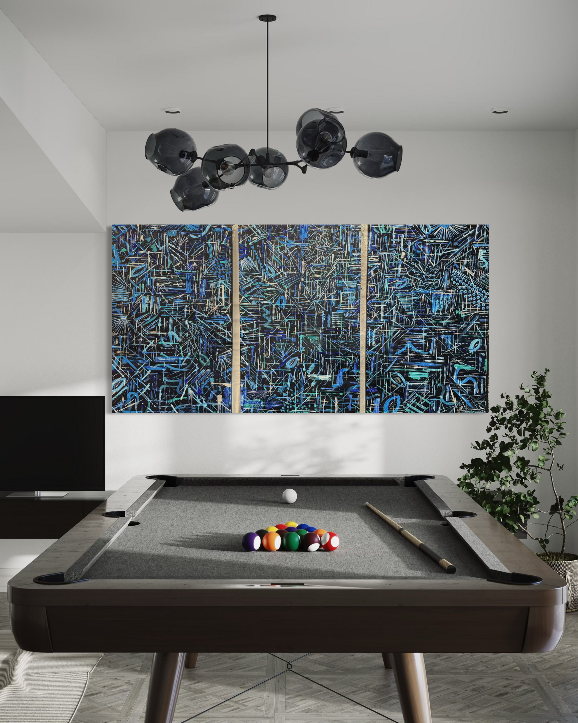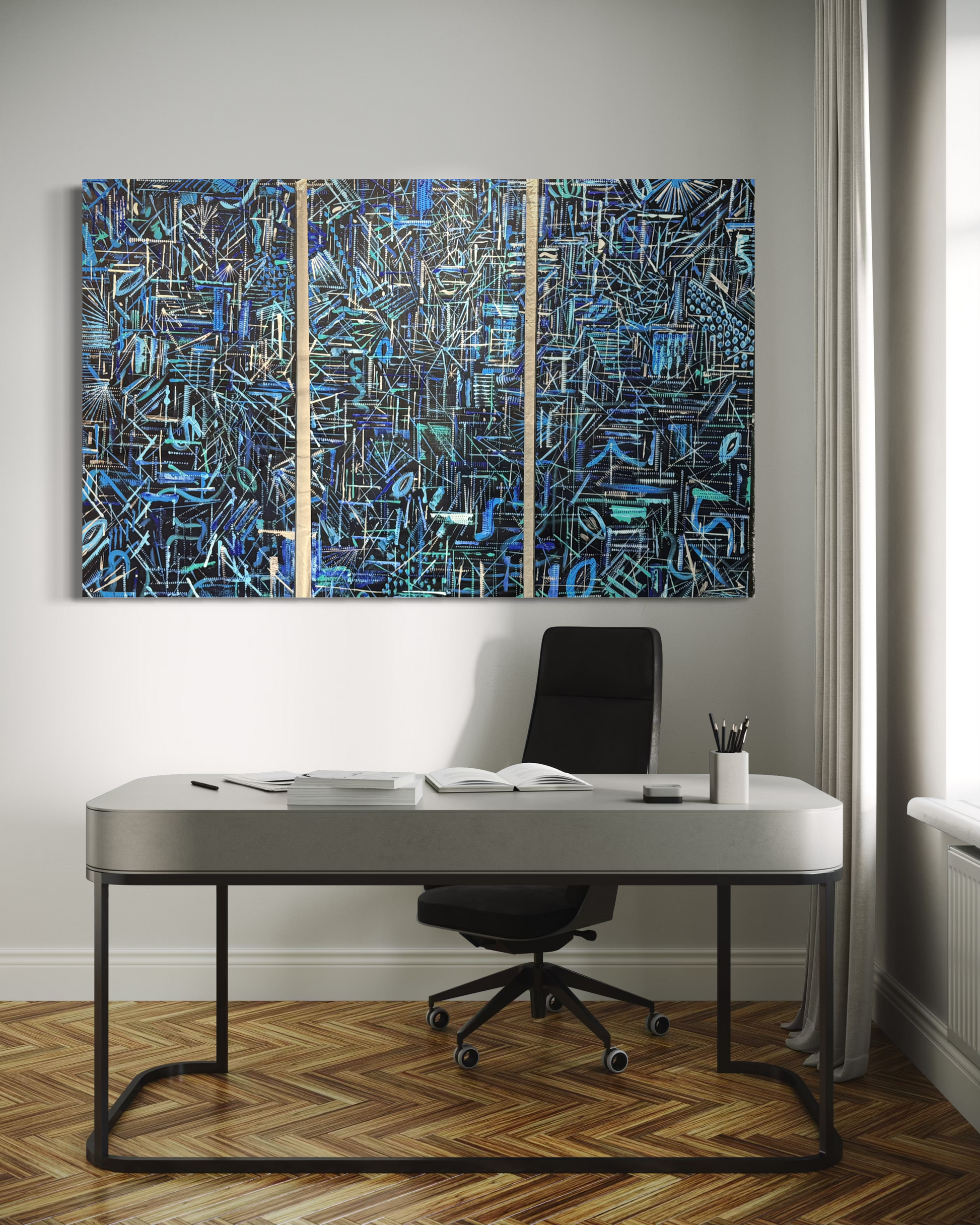 Acrílico sobre madera 196 x 1.36 x 6 cm (Tríptico) Con marco de hoja de plata avejentada.
