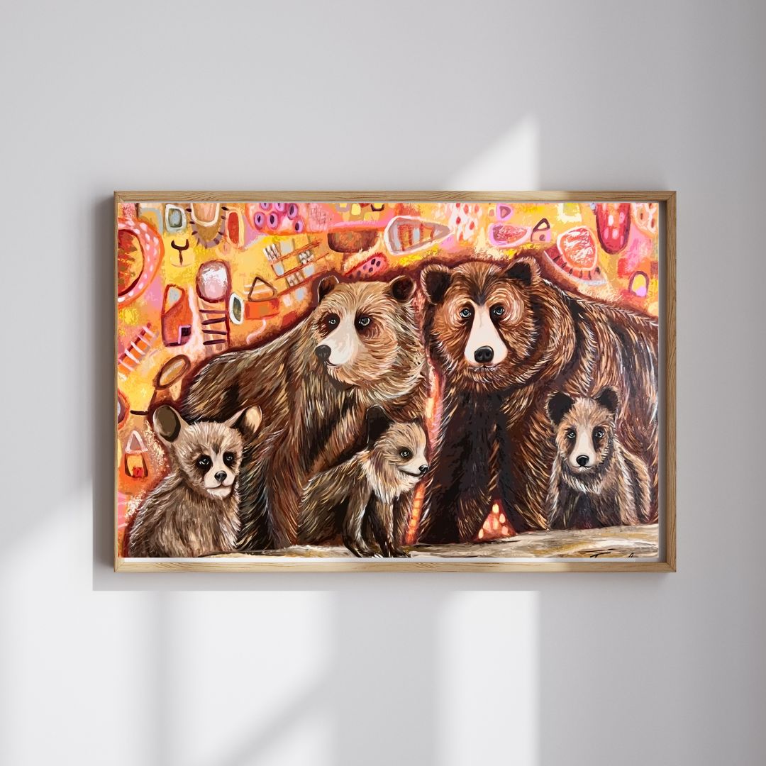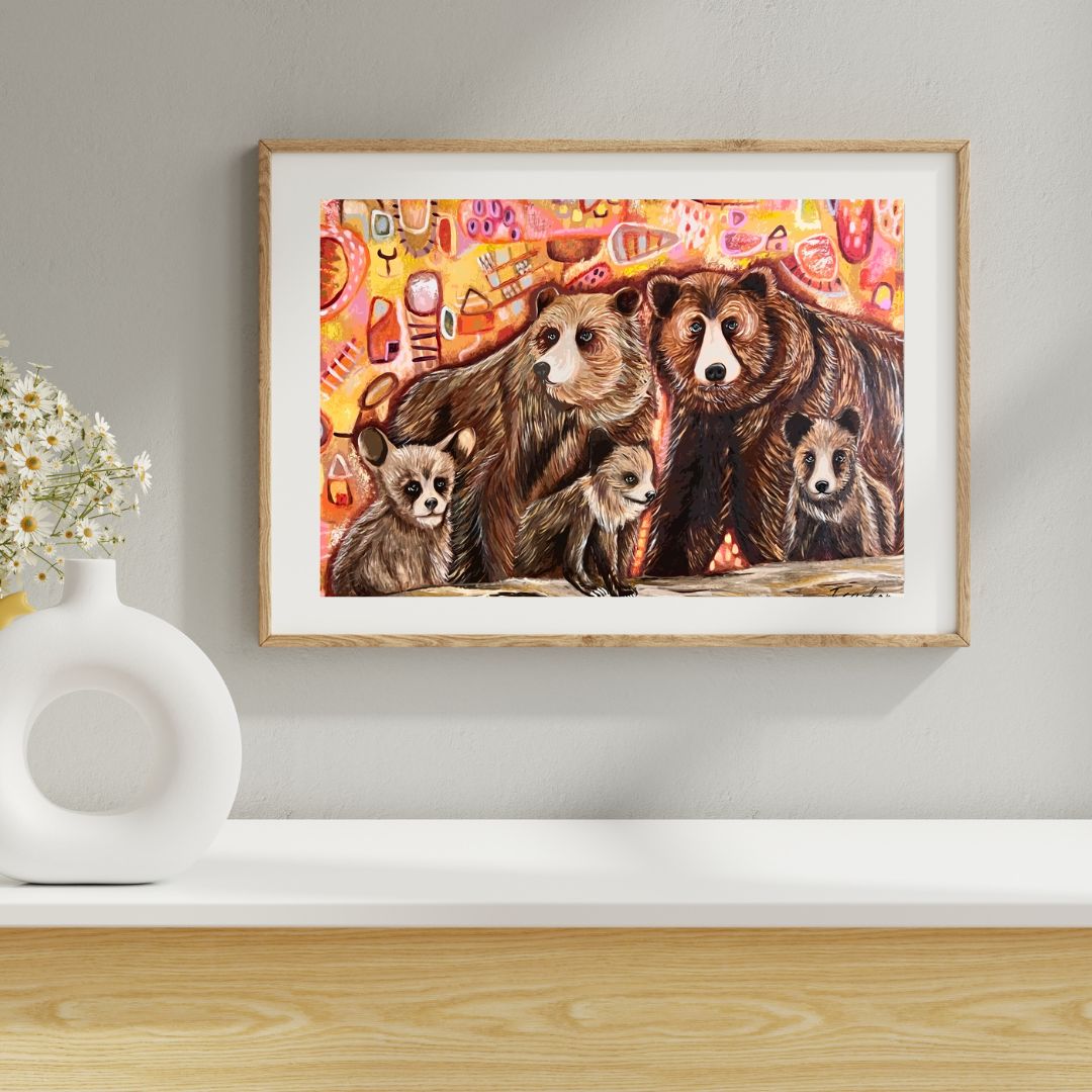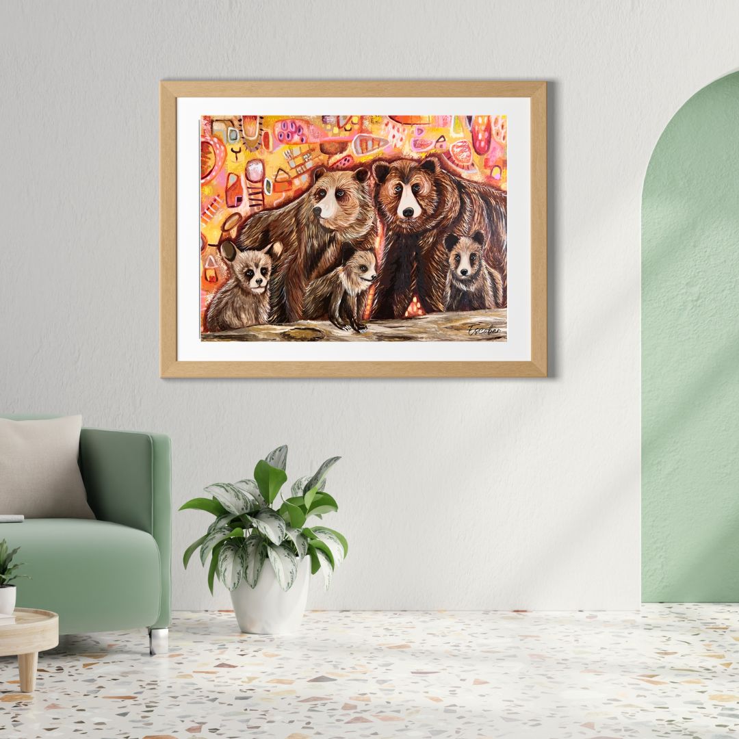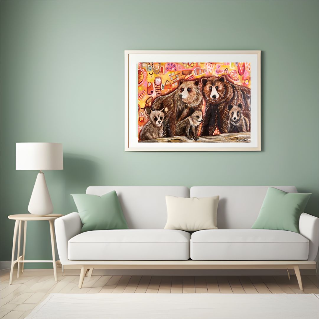 "Family Bears" Es una obre que representa a la familia, la unidad, la ternura, la mirada del jefe oso transmite limites y atención, una obra muy adecuada para la sala de la familia