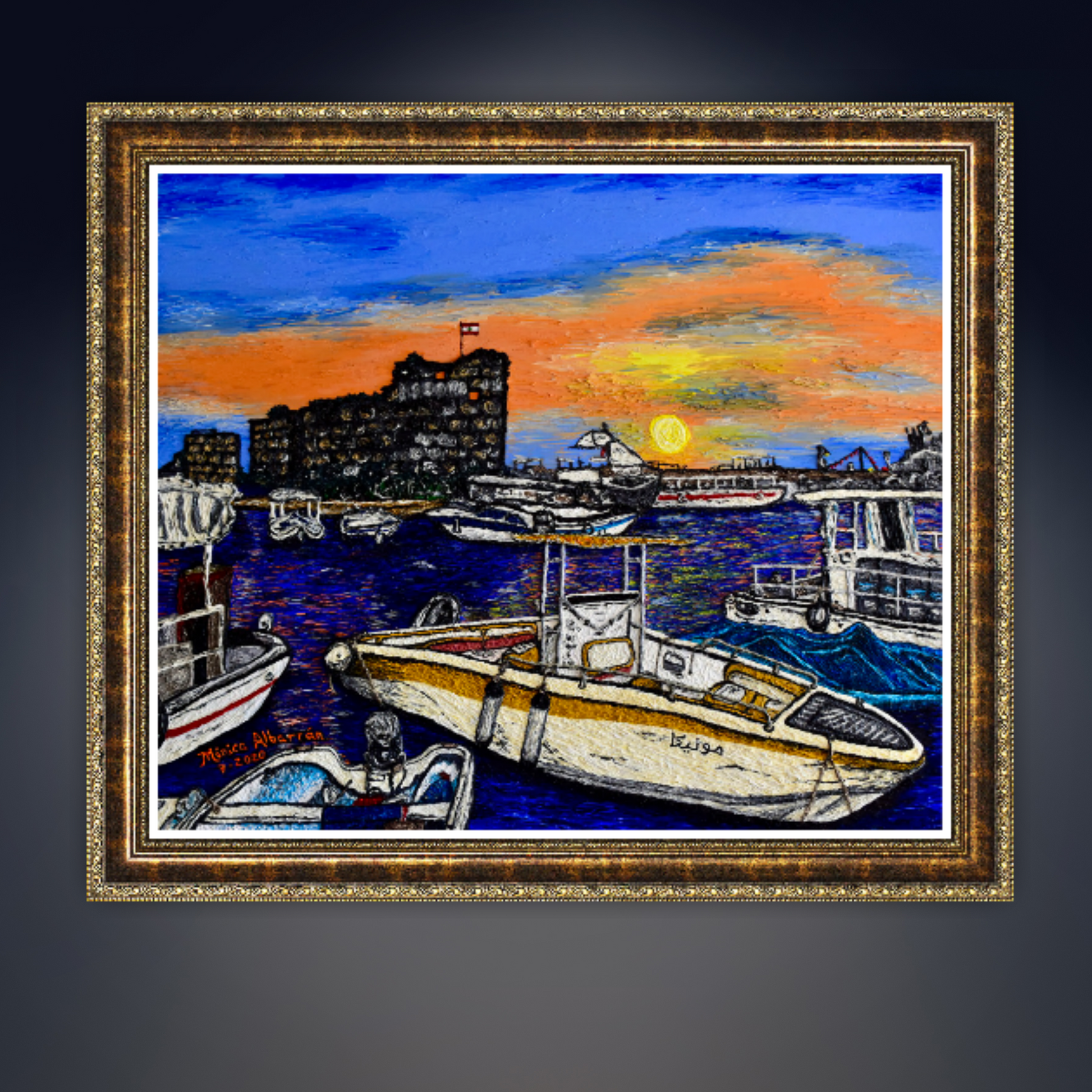 En 2019 tuve la oportunidad de viajar a Libano, para conocer a la familia de mi esposo. En esta pintura quise representar una escena del Puerto de Biblos, que se quedó grabada en mi cabeza, por su belleza y toda su historia.