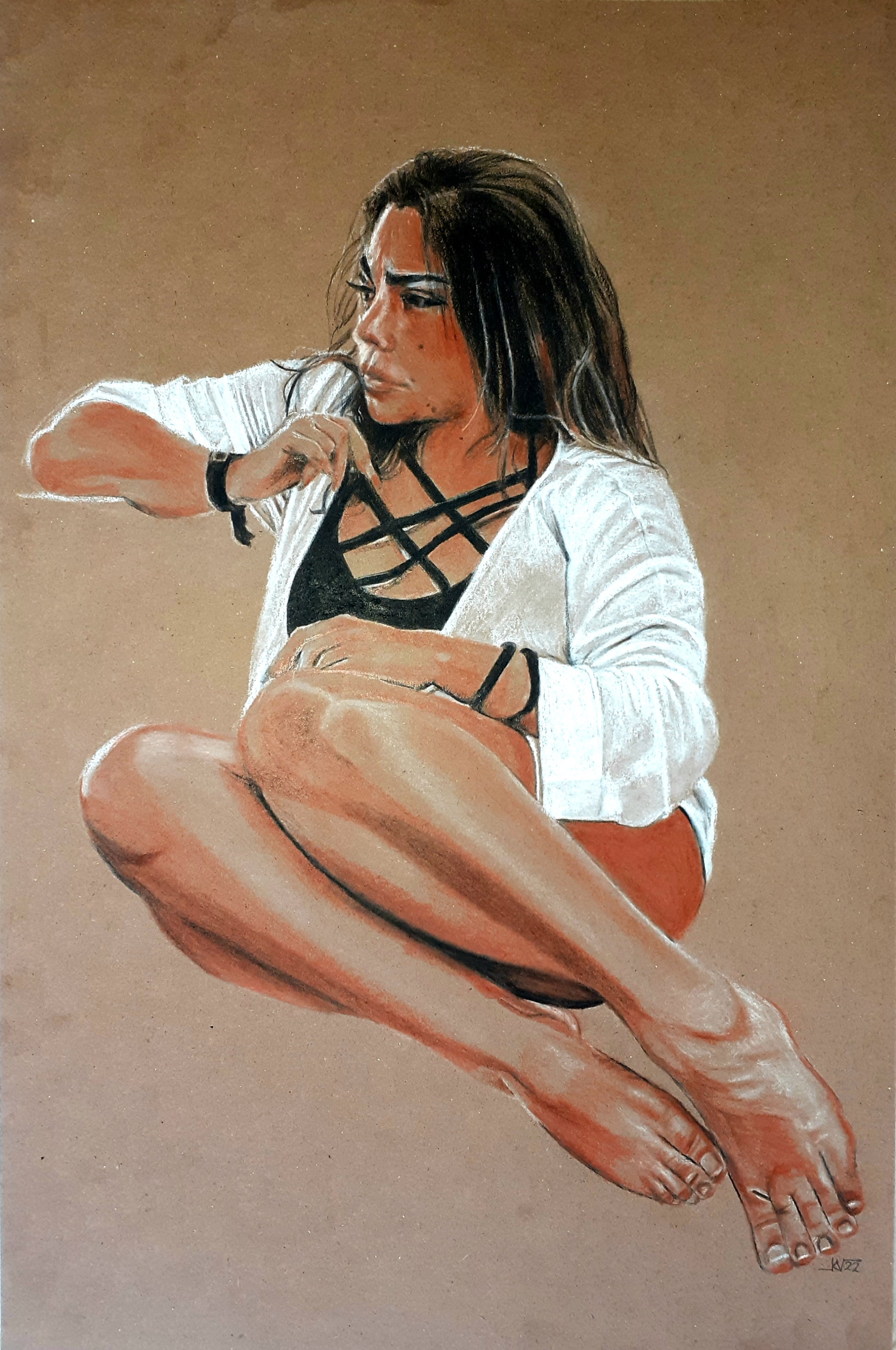 Colores sanguina y carboncillo sobre papel craft