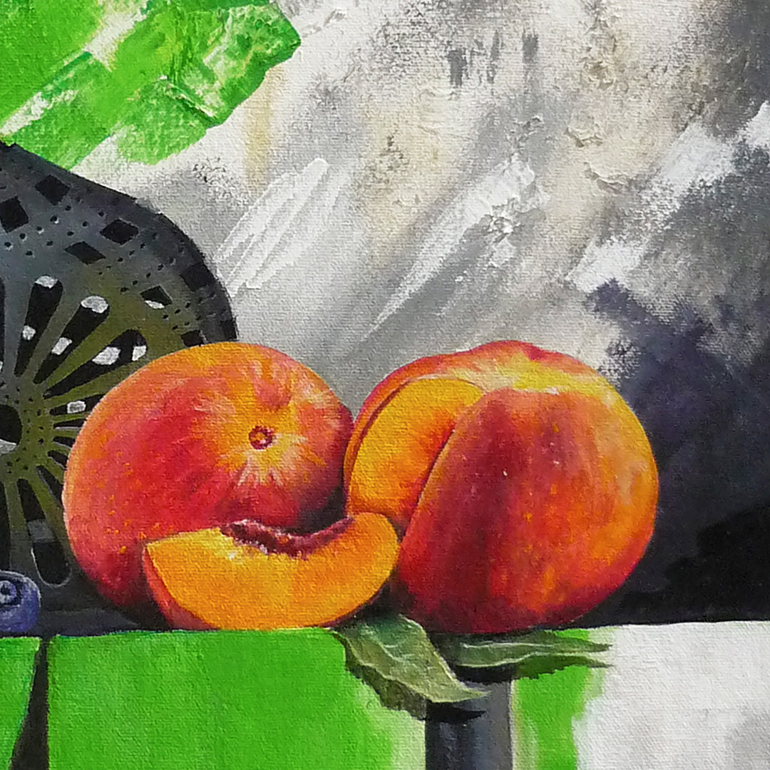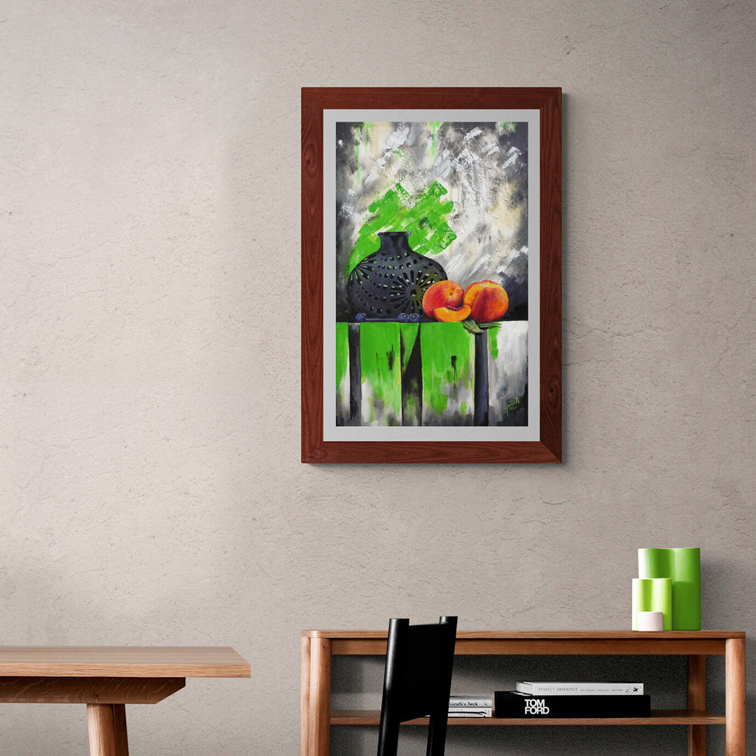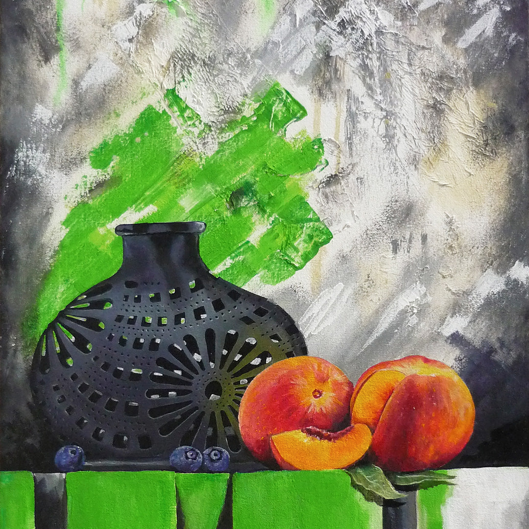 Obra de la colección "Bodegones modernos", Retomo lo clásico del tema de bodegones y les doy un toque moderno y contemporaneo de color vibrante y minimalista con pocos elementos en la composición.