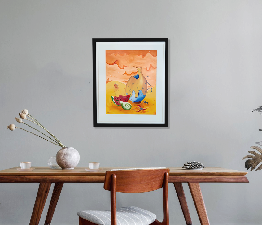 Una vez ubicada la obra en su lugar de exposición, te recomendamos evitar tocarla, no la expongas a cambios bruscos de temperatura y ten cuidado exponiéndola mucho a la luz. Procura mantenerla limpia, libre de polvo y comida y trata de no limpiarla con productos químicos que usarías normalmente en tu casa. Con esto lograrás tener una obra como nueva.