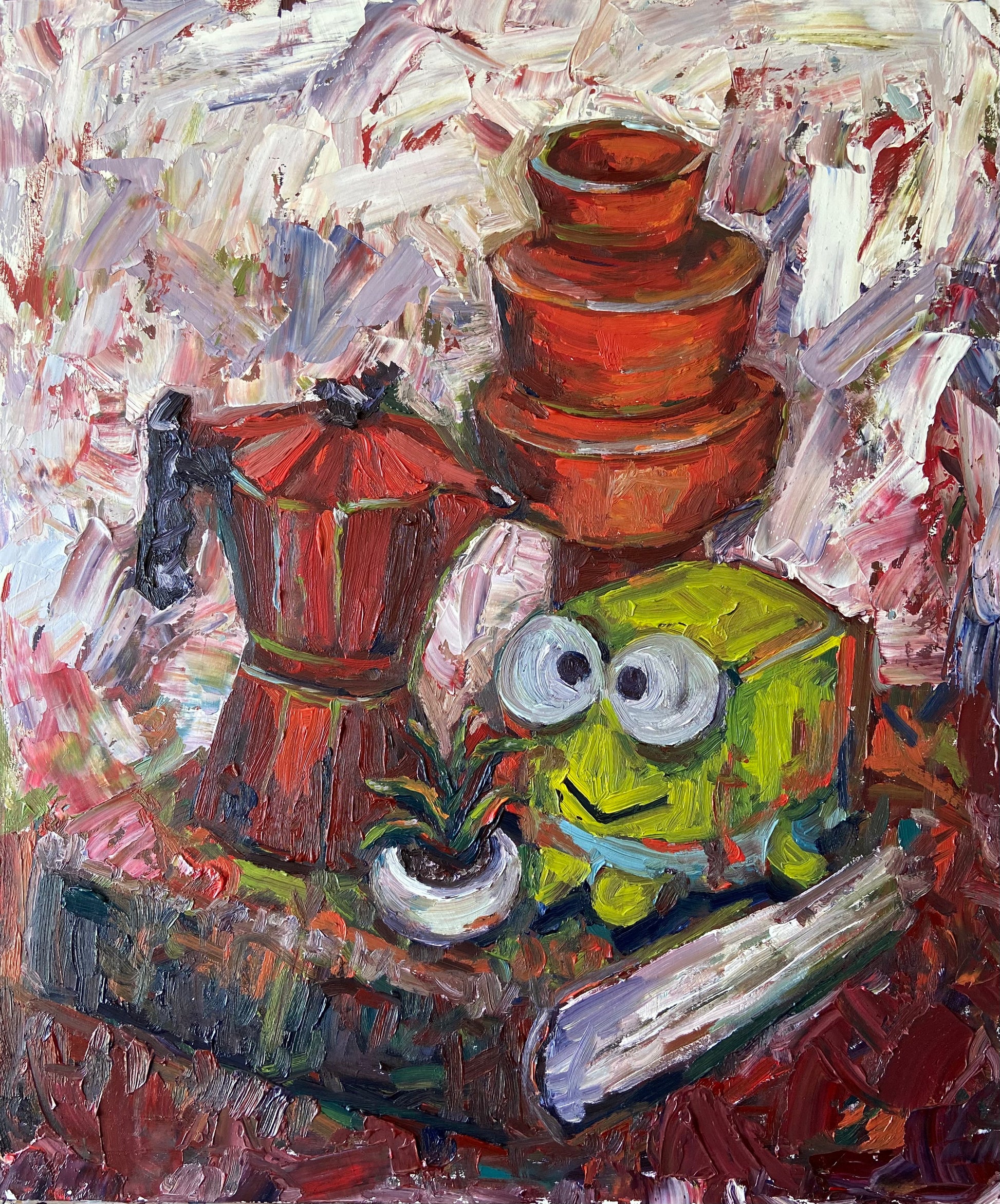 Bodegón al natural con figuras contrastadas conviviendo entre colores y texturas como los buenos amigos