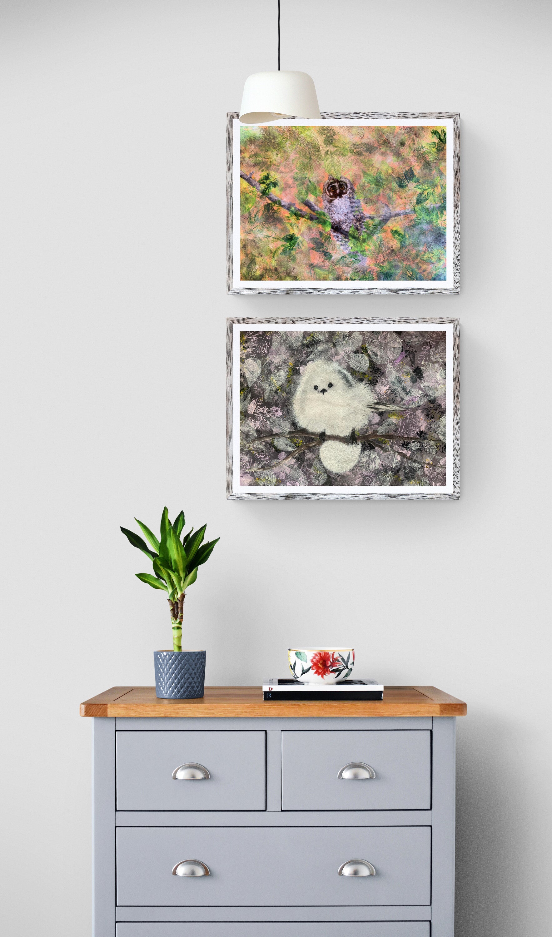 Lo que motiva esta serie es la amalgama entre la impresión colorida de hojas frescas y la transferencia de imágenes de aves; con lo que pretendo reproducir la magia de la naturaleza en el papel o el lienzo y trasladarla a la mirada de quien decida tener a su alcance cotidiano un pedacito de realidad.