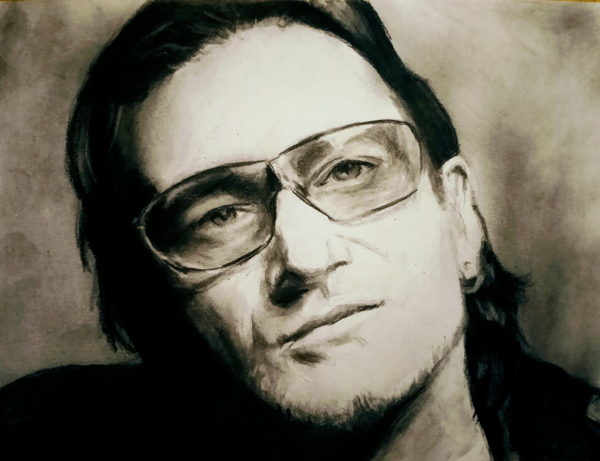 Es una obra que retrata a Bono, el cantante mas importante de la banda de rock irlandésa U2. El dibujo no tiene marco.