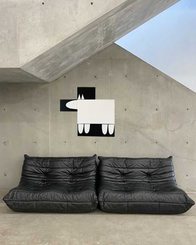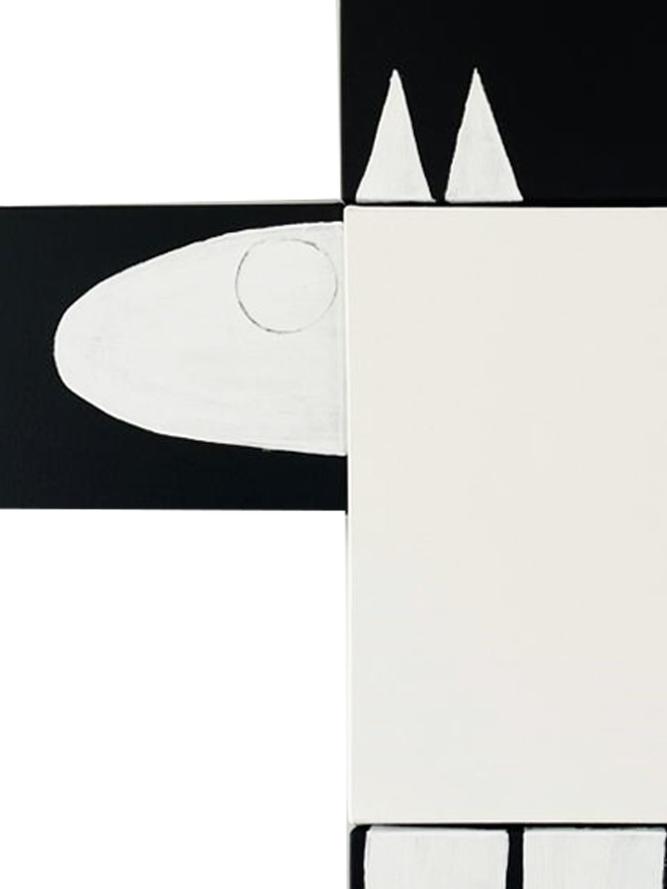 BRUNA es una representación de la mascota del artista (Bull terrier ingles) en la que retrata al personaje desde una percepción infantil y rustica recordando de alguna manera los recuerdos de las pinturas rupestres de la antigüedad.