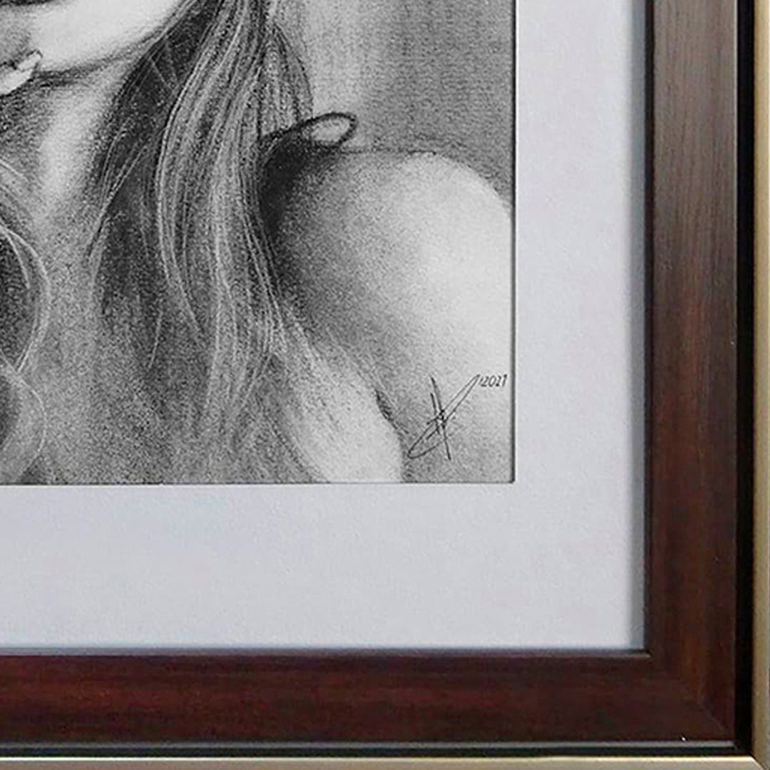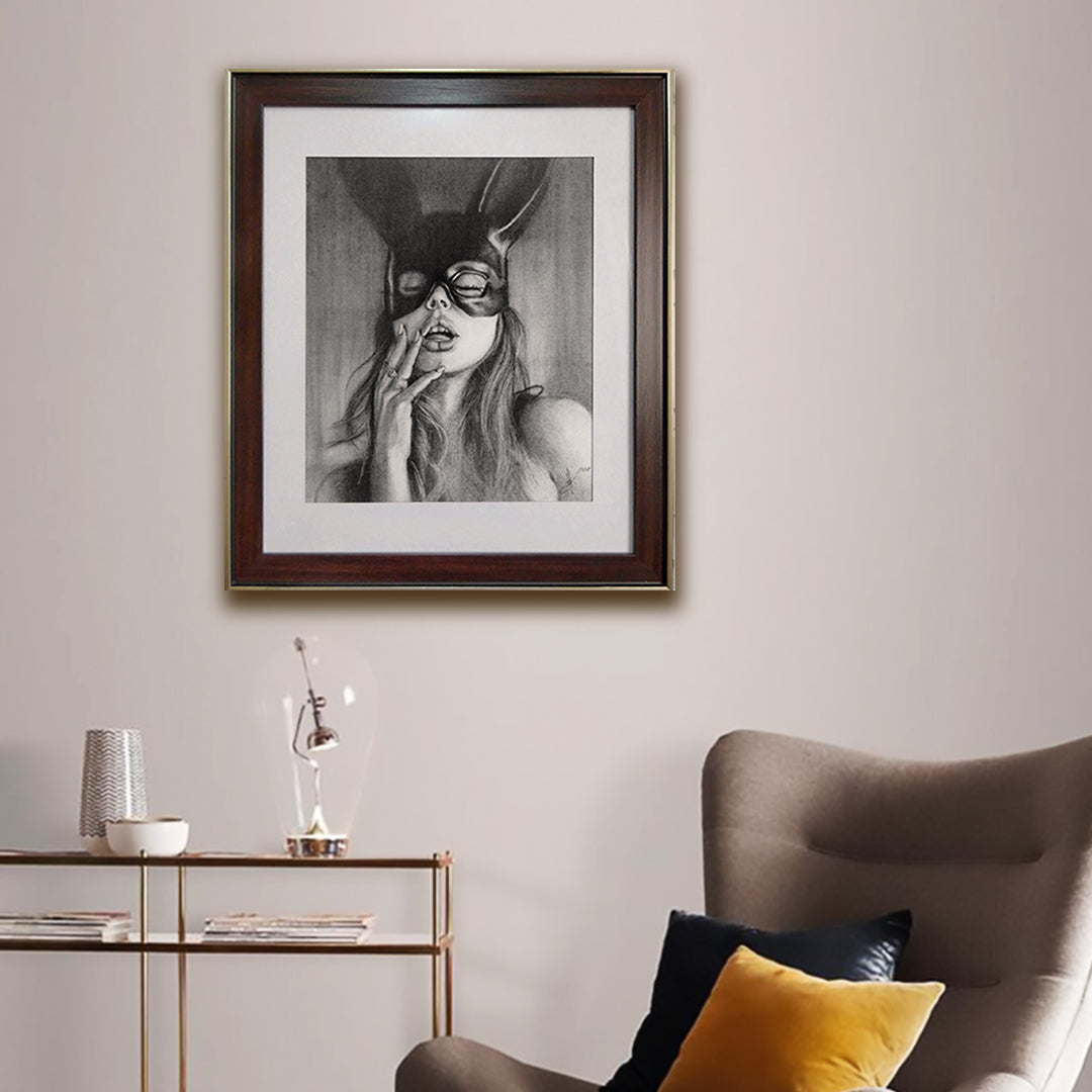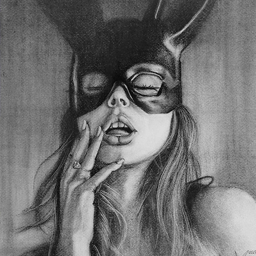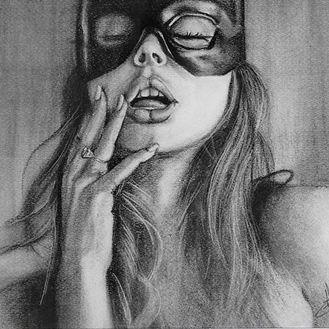 Retrato contemporáneo que interpreta sensualidad, ternura e inocencia, conteniéndola sutilmente detrás de una máscara. Donde los sentimientos más puros o los más oscuros, podrían encontrarse. (Año 2021)