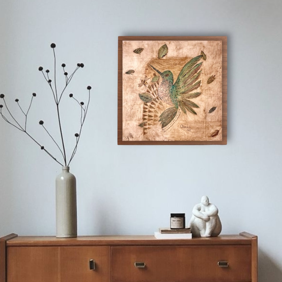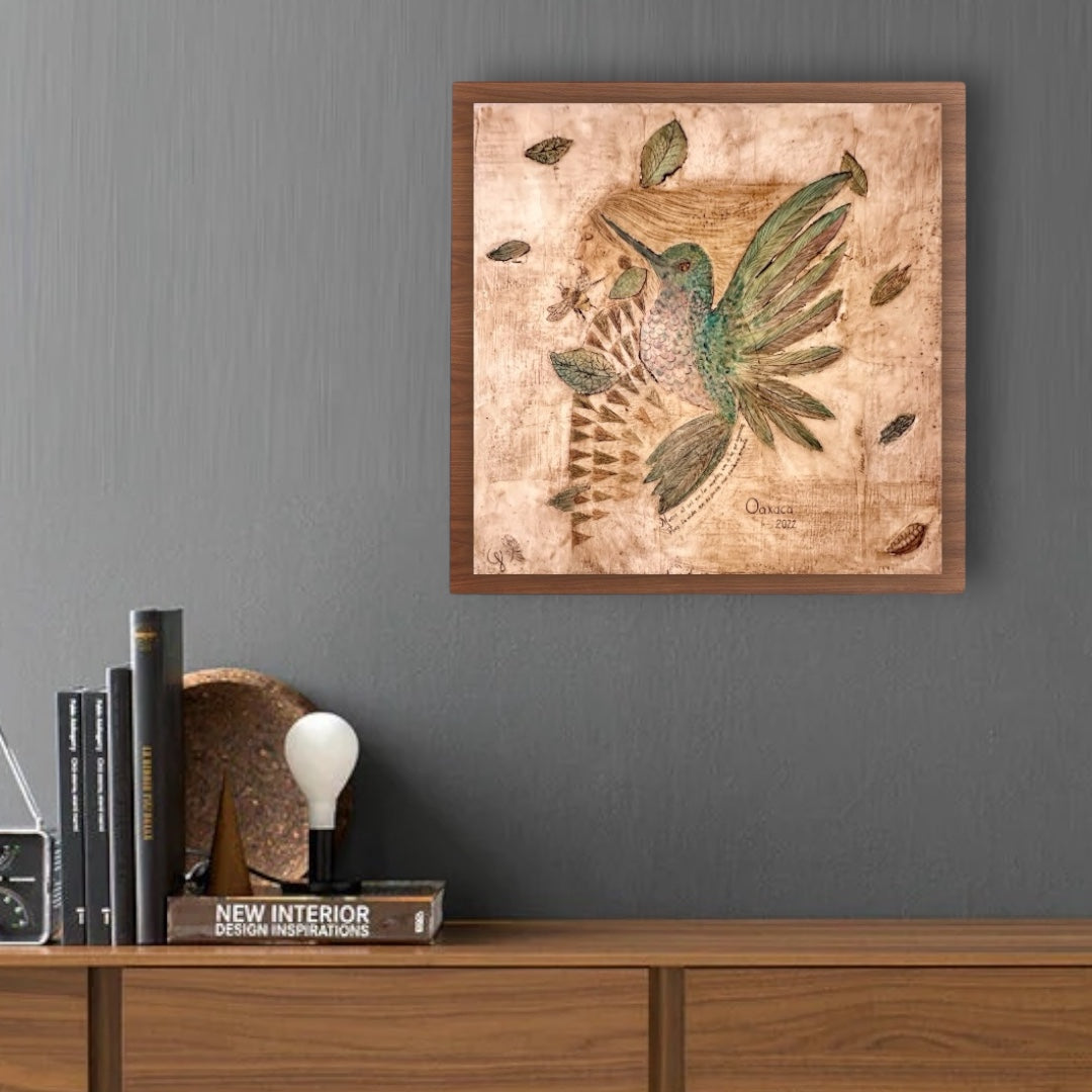 Una vez ubicada la obra en su lugar de exposición, te recomendamos evitar tocarla, no la expongas a cambios bruscos de temperatura y ten cuidado exponiéndola mucho a la luz. Procura mantenerla limpia, libre de polvo y comida y trata de no limpiarla con productos químicos que usarías normalmente en tu casa. Con esto lograrás tener una obra como nueva.