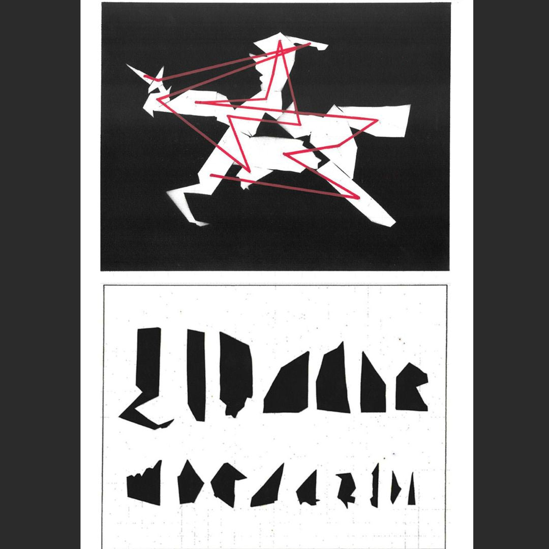 Esténcil-collage intervenido y fragmentos sobre cartulina