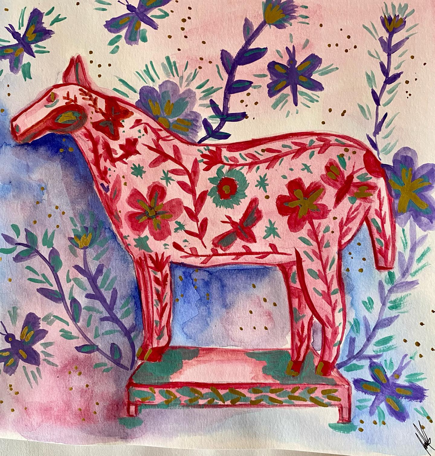 Como el gran caballo de Troya con mi propia interpretación con tonos morados, rojos y verdes.
