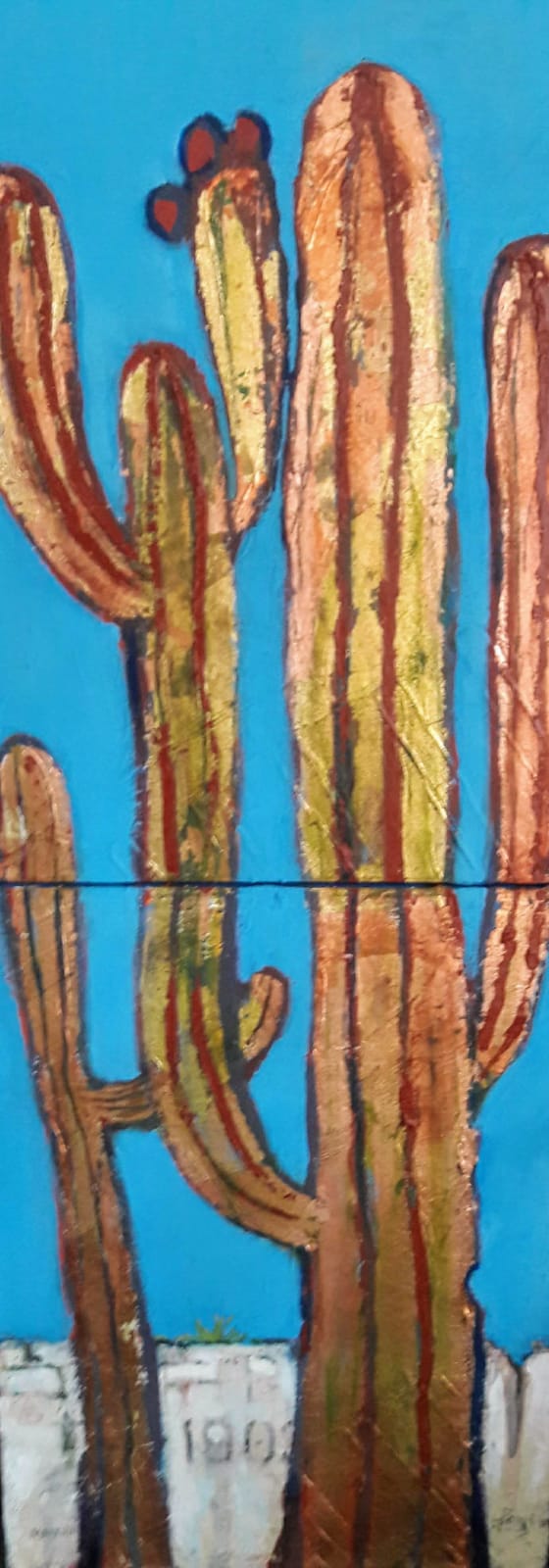 Mixta sobre tela(acrílico y pan de cobre).80X30 cm
