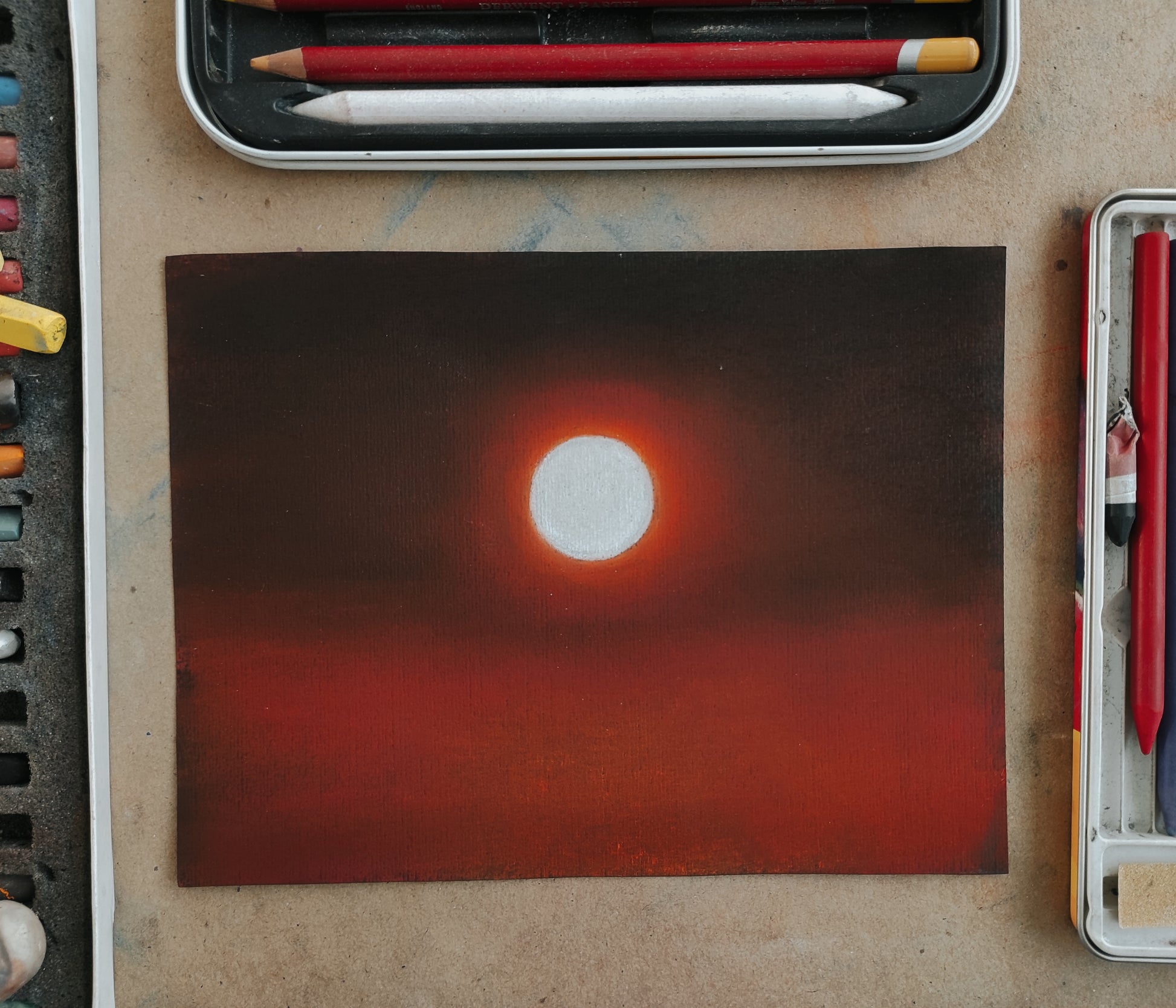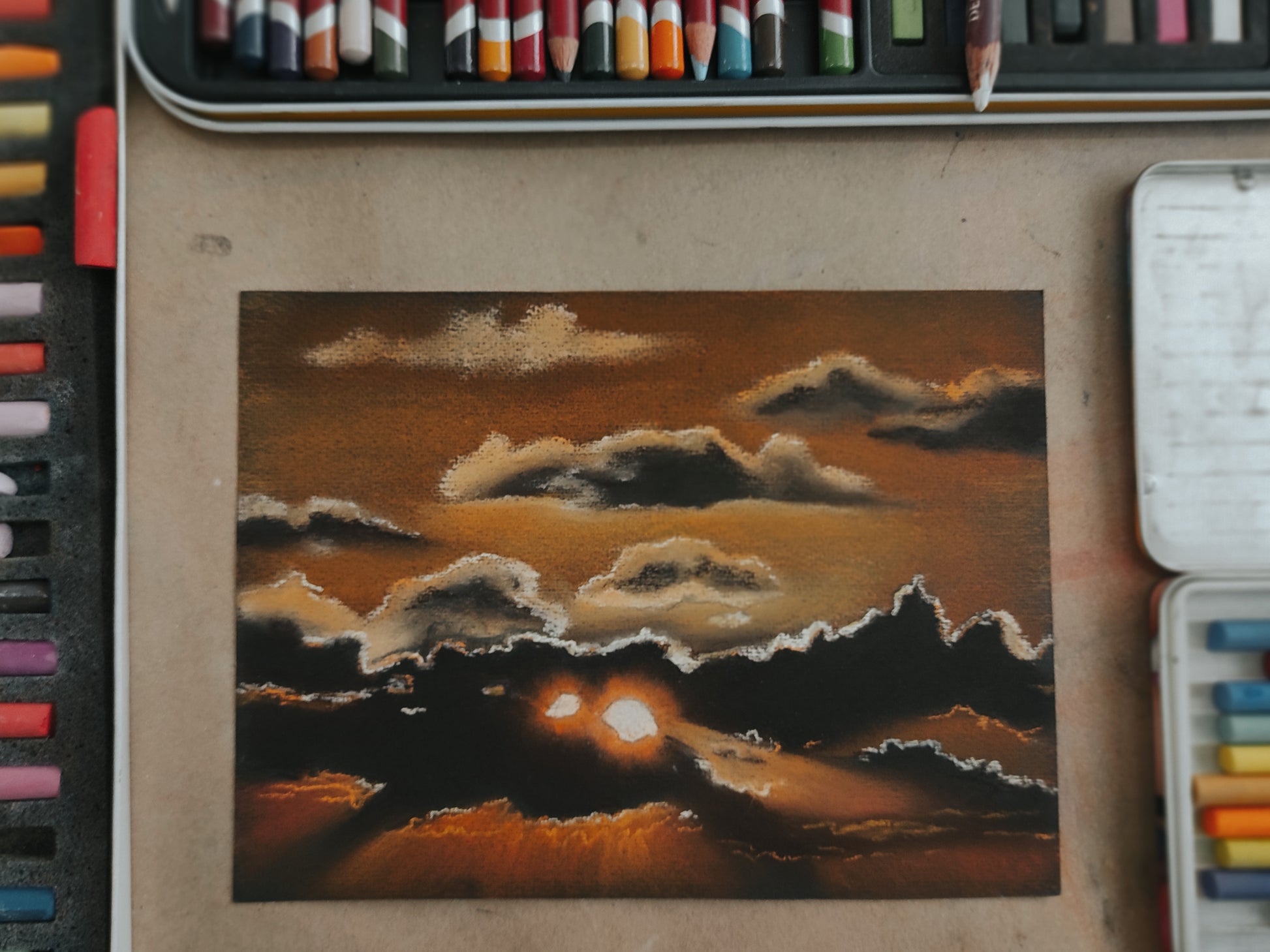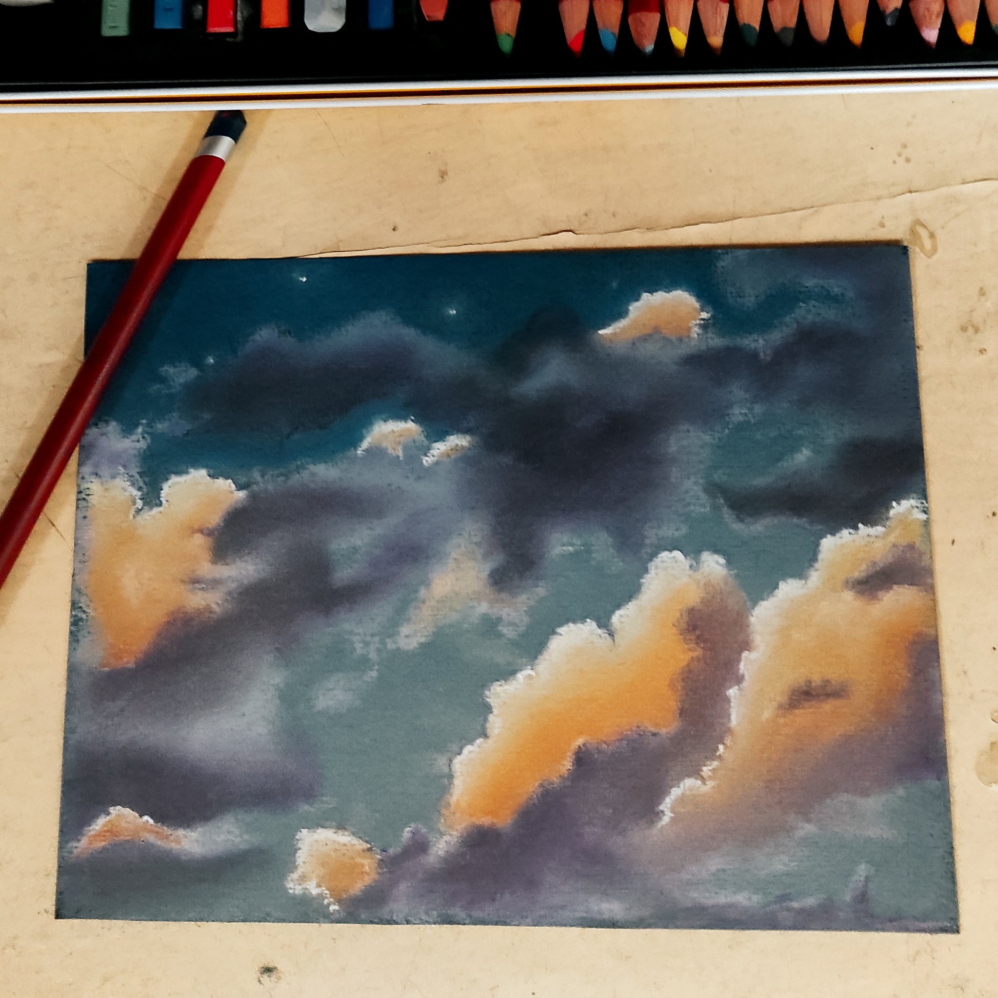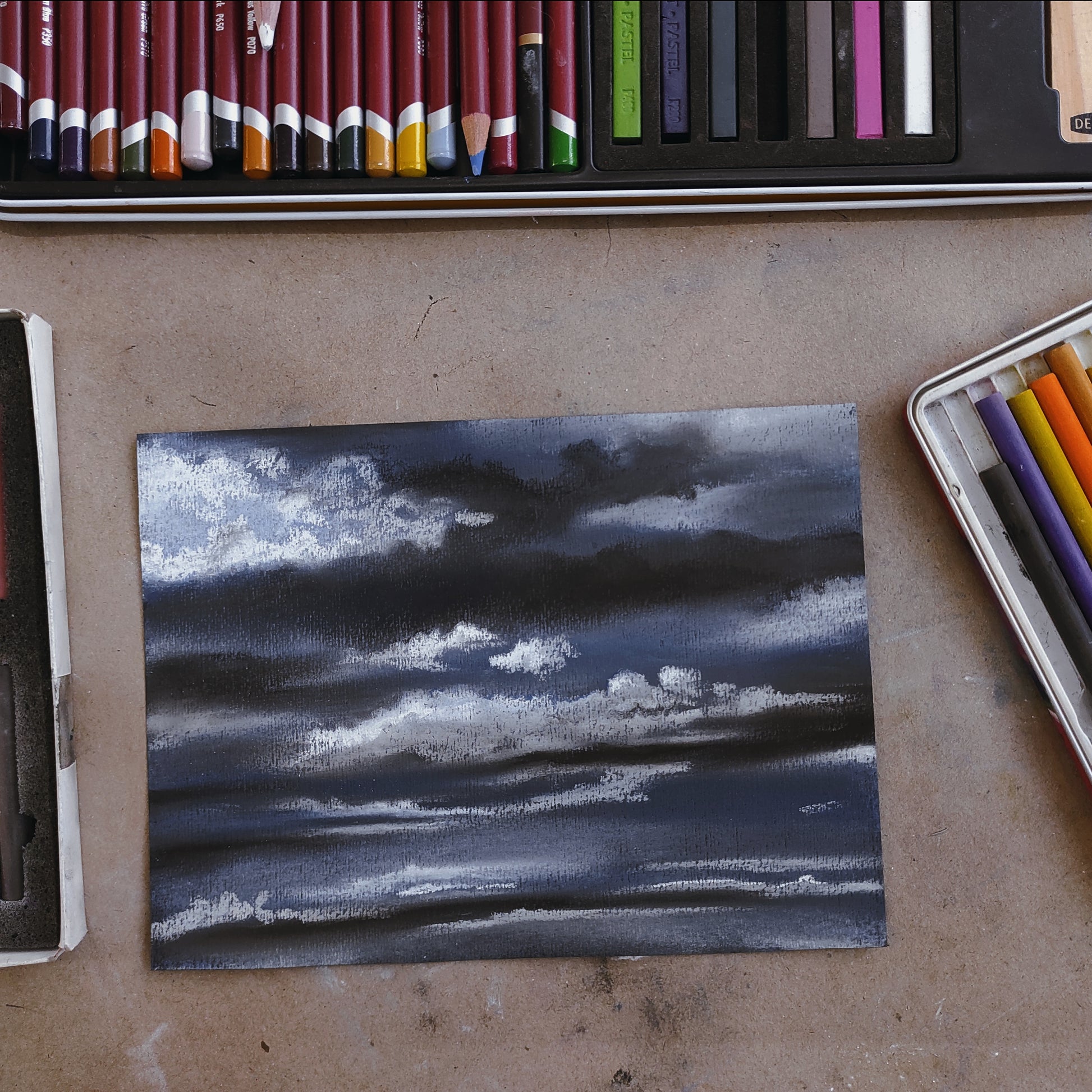 Obra inspirada en la inmensidad del cielo y sus diferentes momentos, en los cuales pueden generar una energía diferente dependiendo sus colores.
