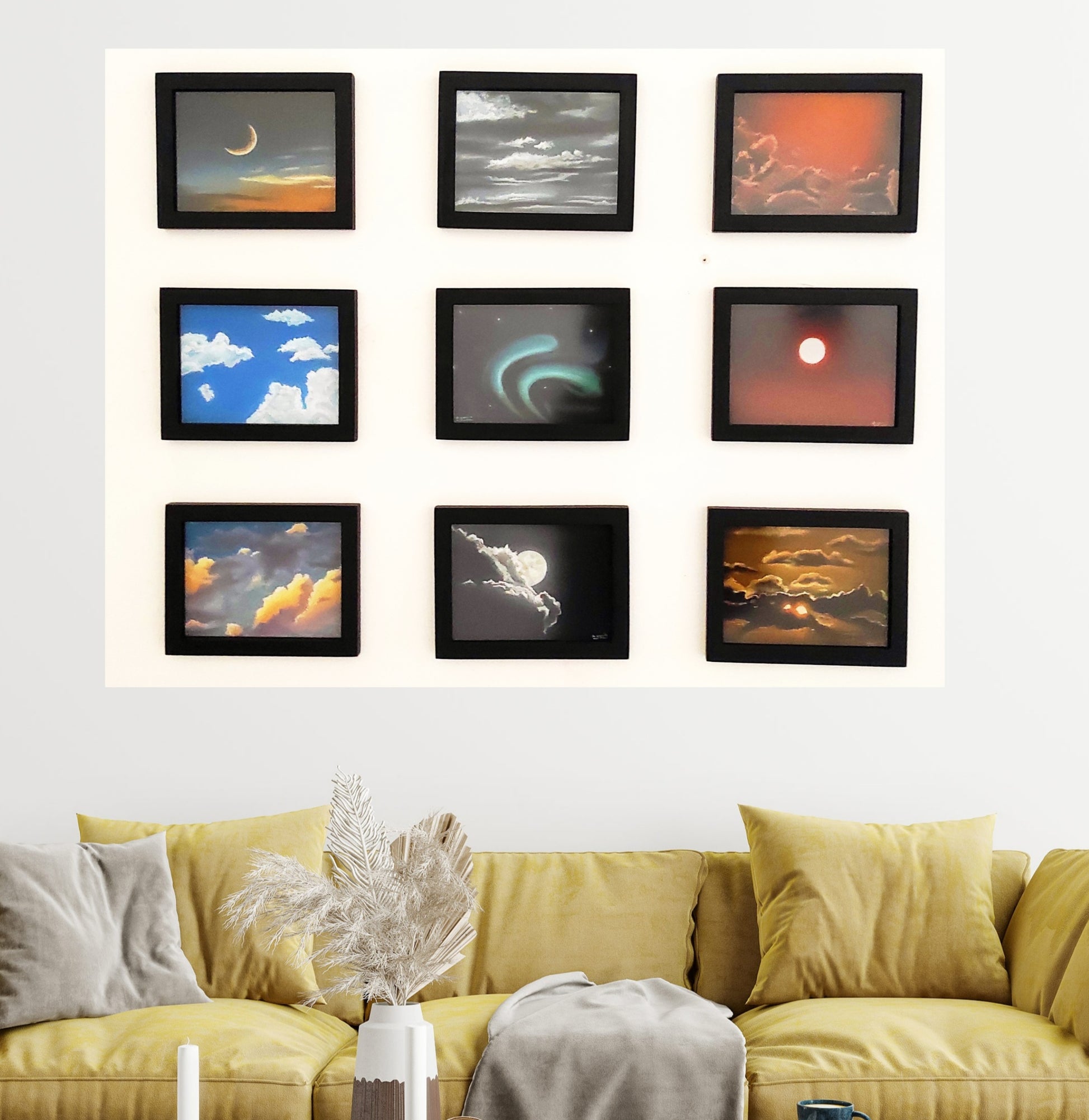 Serie de 9 obras de 15x20 cm enmarcadas con cristal antireflejo.