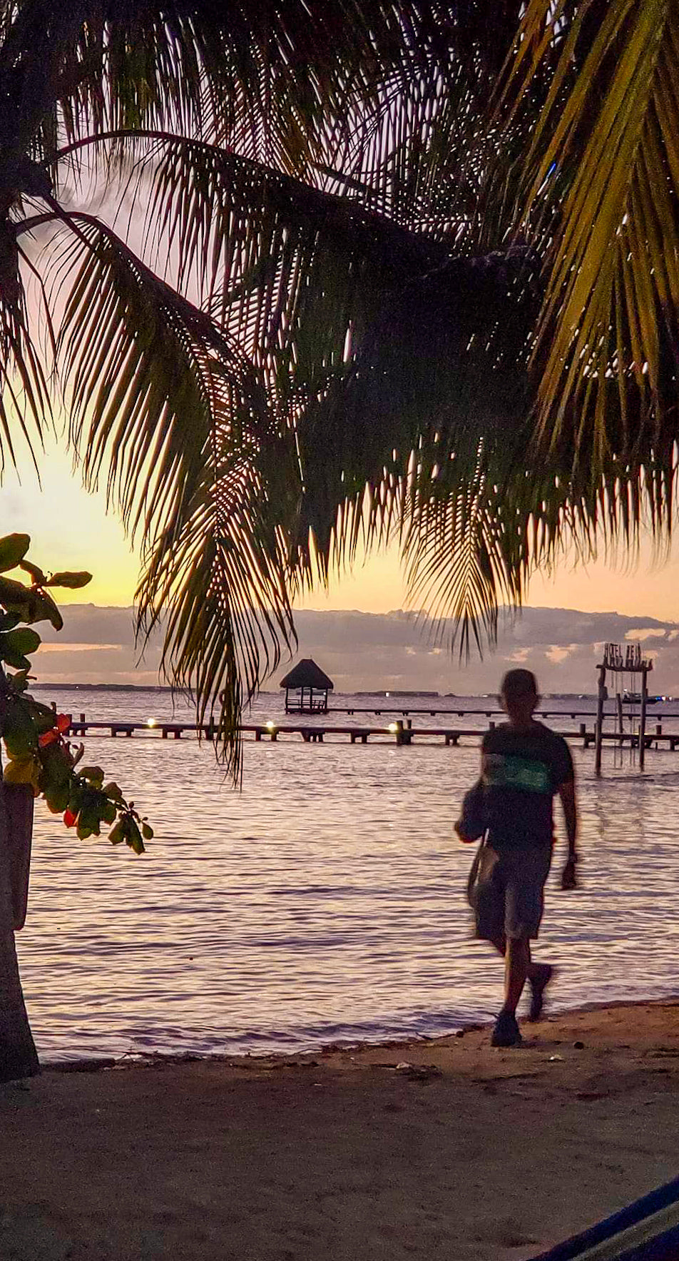 Un turista dando un paseo por una playa de Isla Mujeres, Quintana Roo.